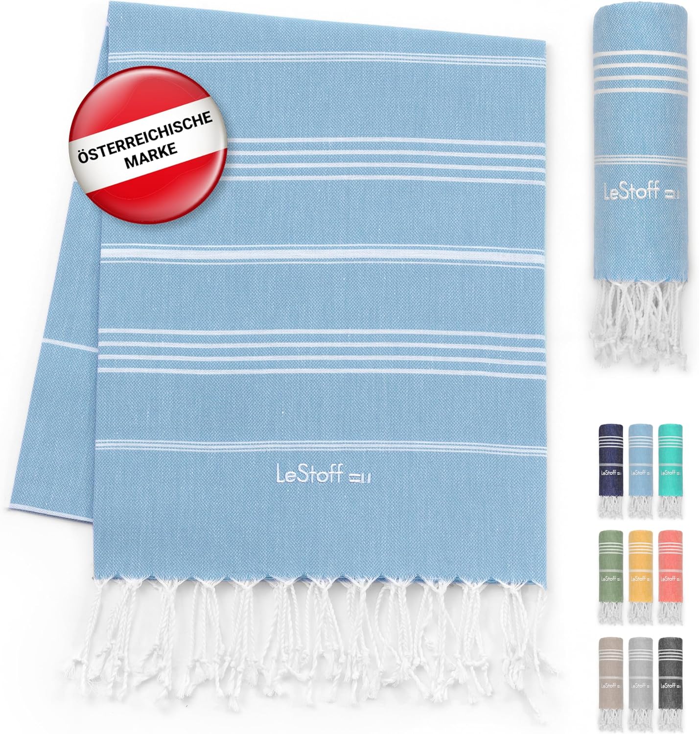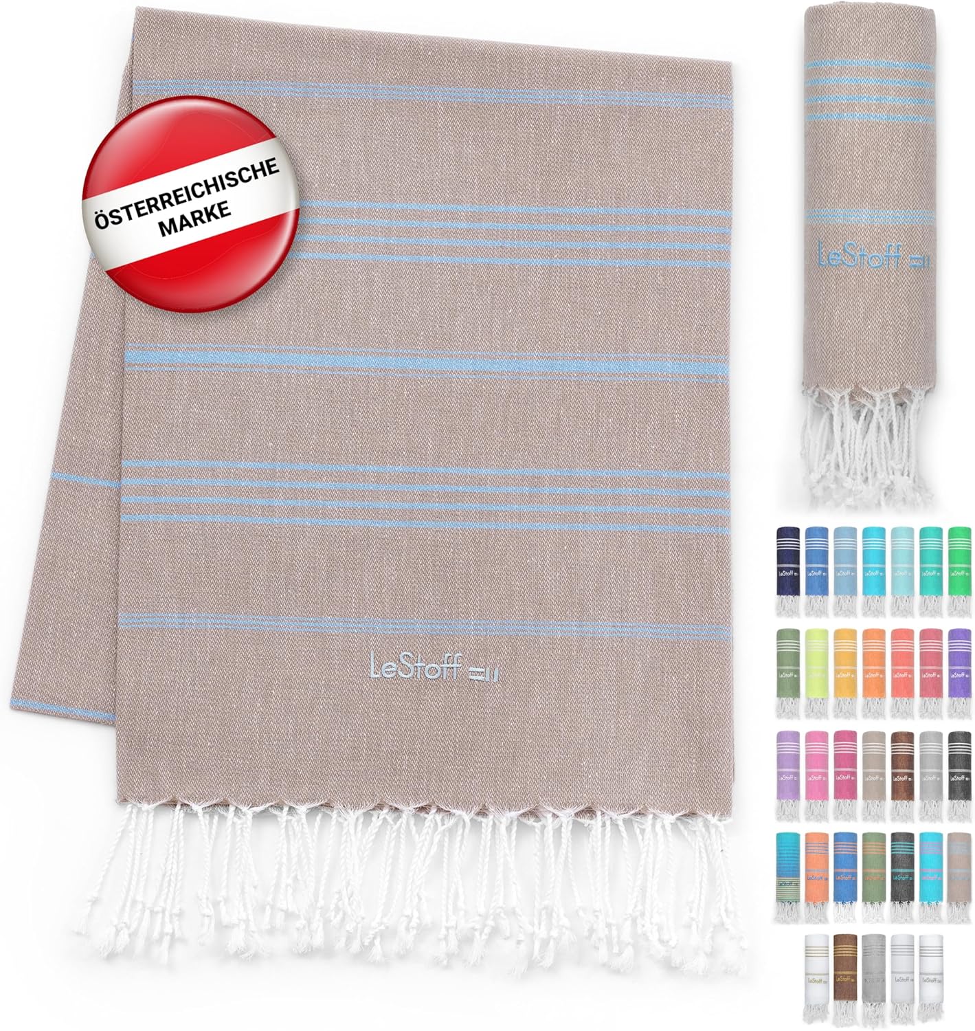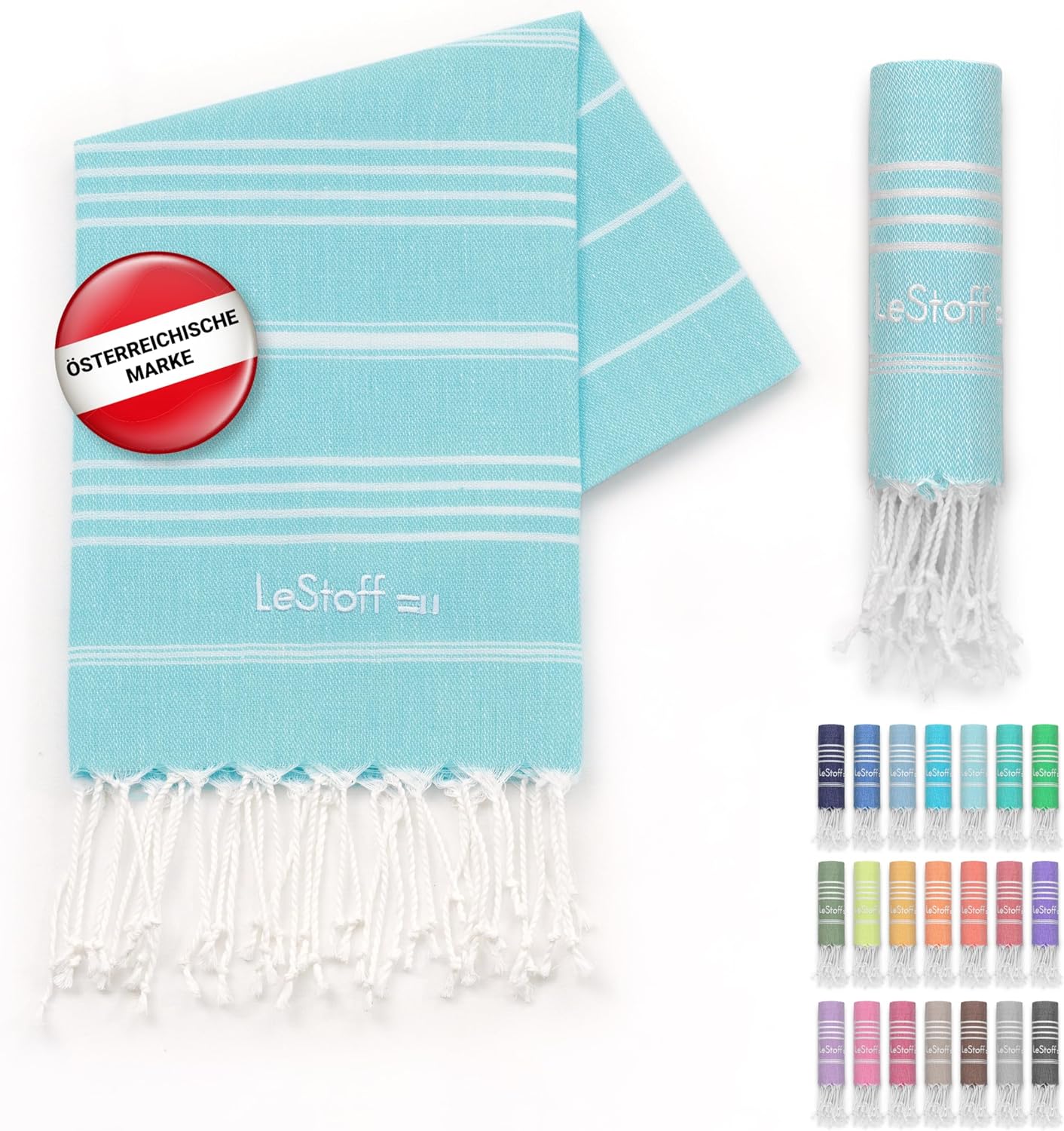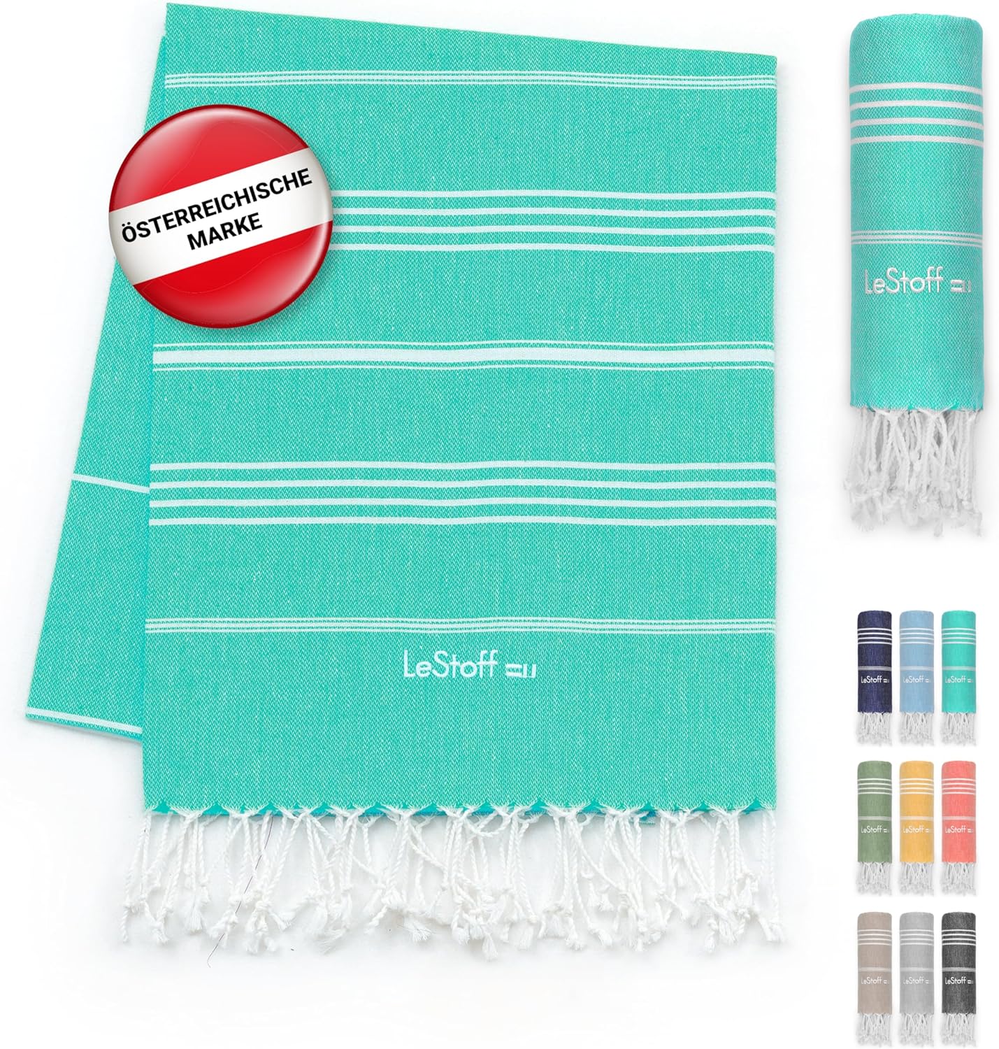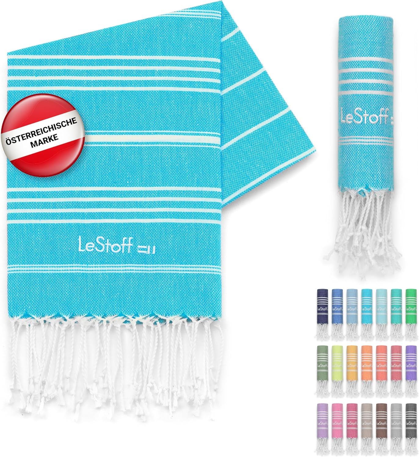 • Многофункционална: независимо дали за сушене, като плажна кърпа, кърпа за сауна, спортна кърпа, кърпа за баня или кърпа за йога – нашата хамам кърпа LeStoff впечатлява със своята многофункционалност. Идеална за пътуване, защото благодарение на лекотата си и възможността за навиване, тя е перфектната кърпа за пътуване и къмпинг.