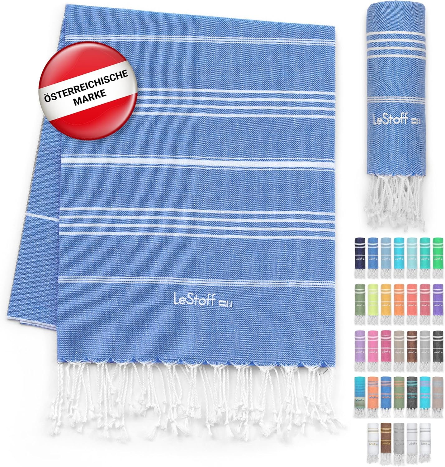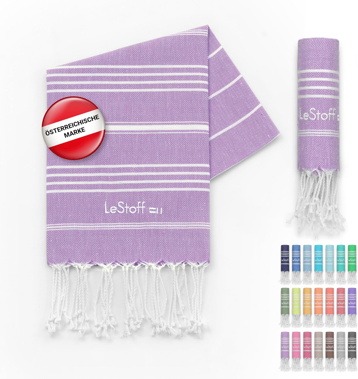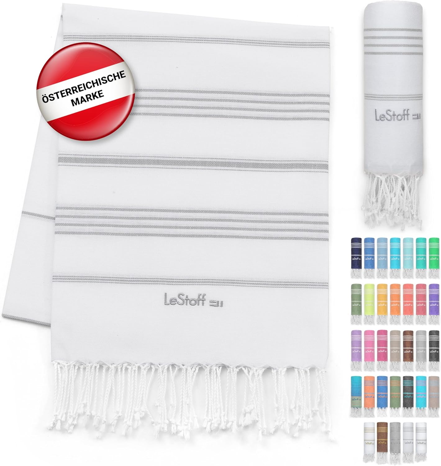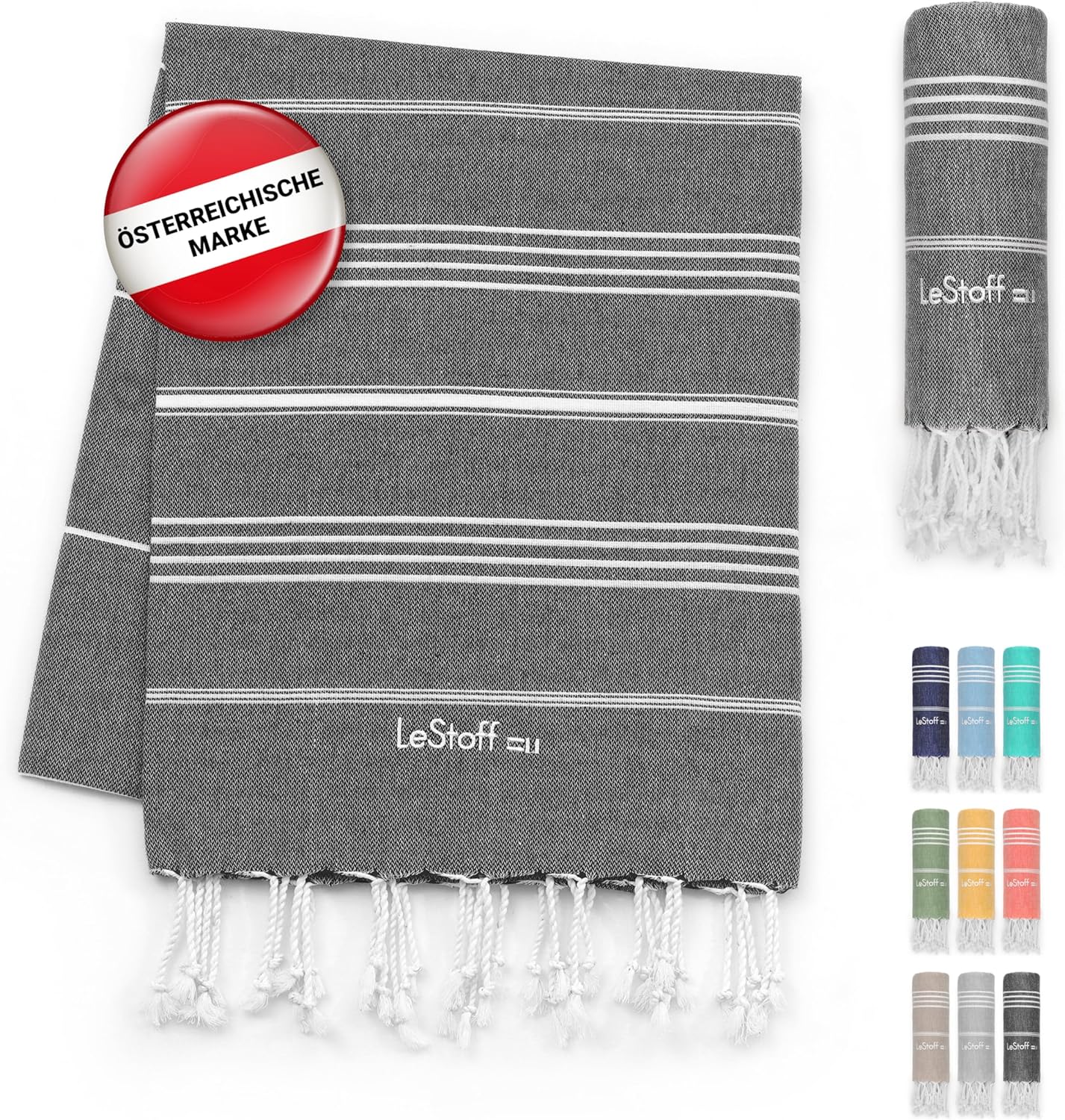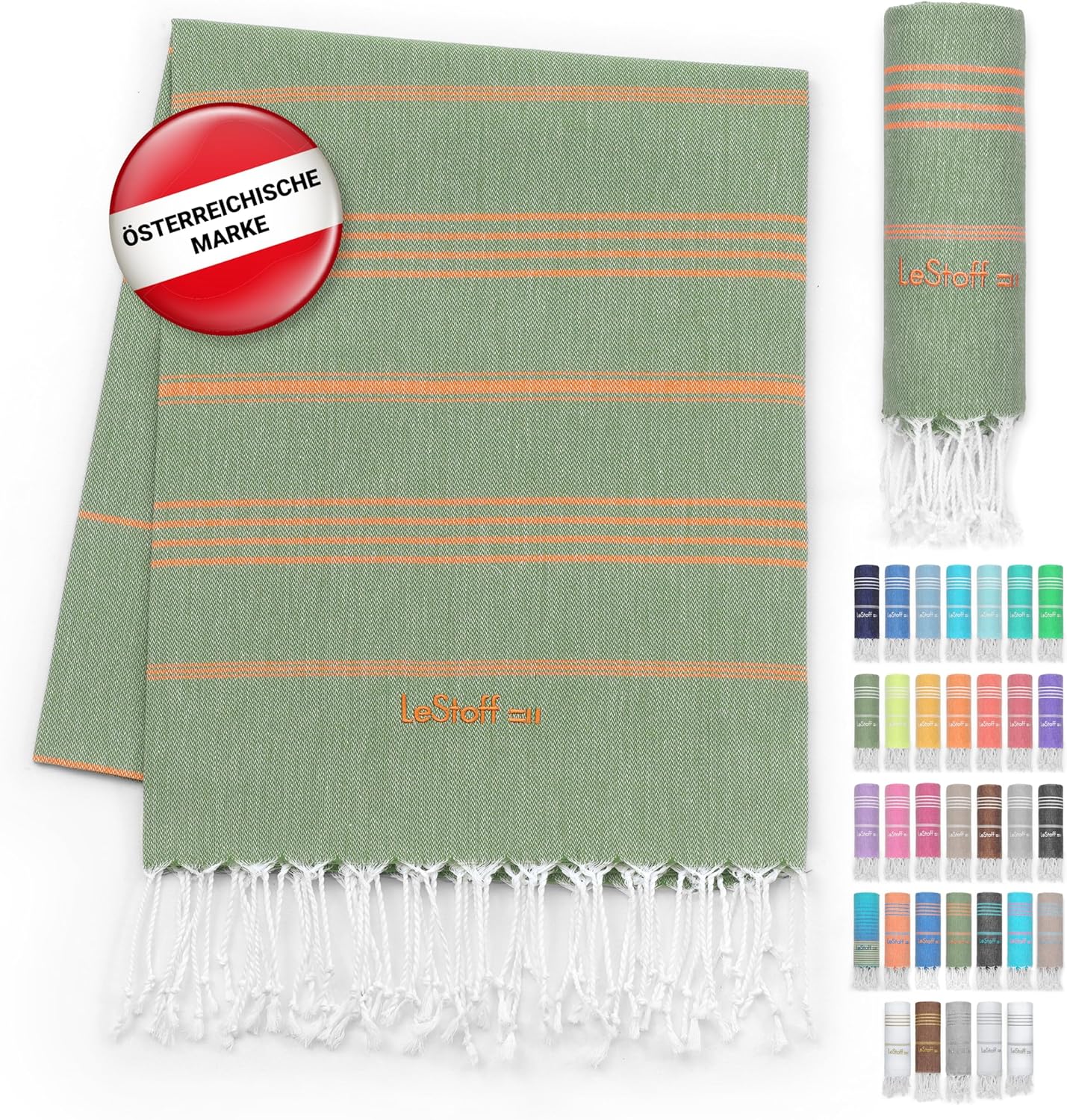 • Многофункционална: независимо дали за сушене, като плажна кърпа, кърпа за сауна, спортна кърпа, кърпа за баня или кърпа за йога – нашата хамам кърпа LeStoff впечатлява със своята многофункционалност. Идеална за пътуване, защото благодарение на лекотата си и възможността за навиване, тя е перфектната кърпа за пътуване и къмпинг.