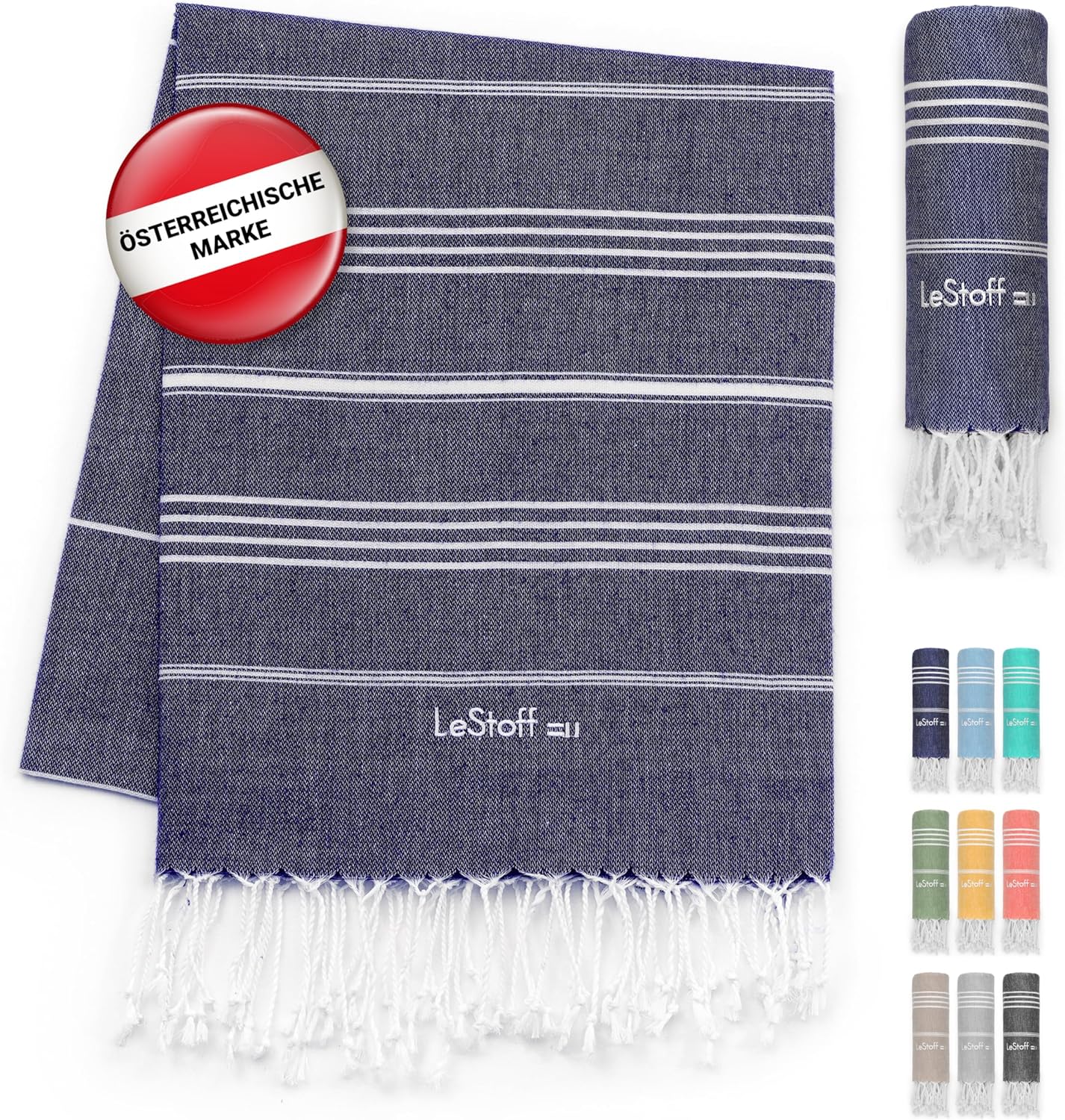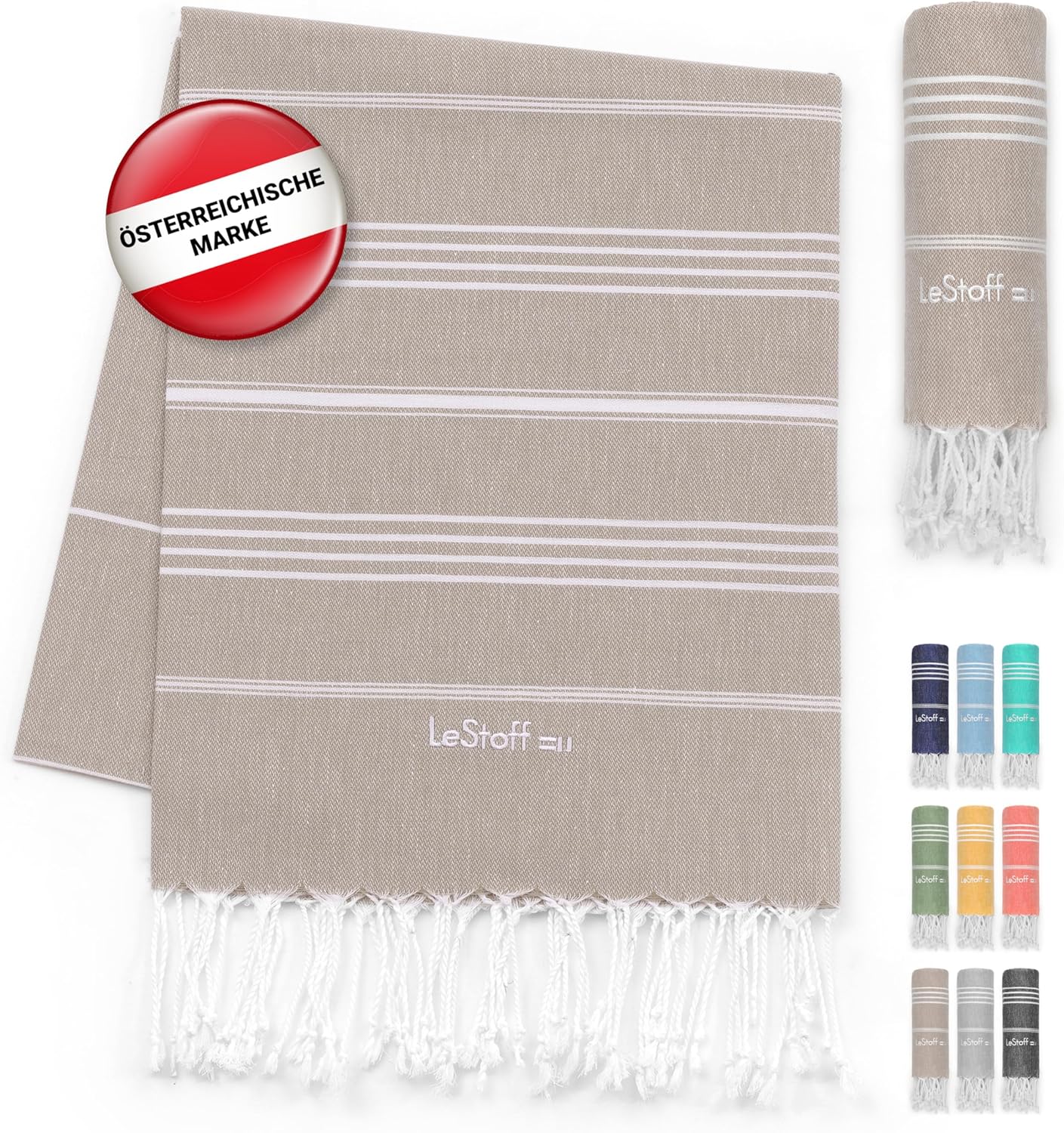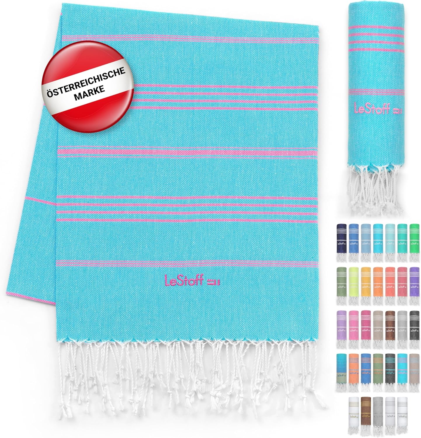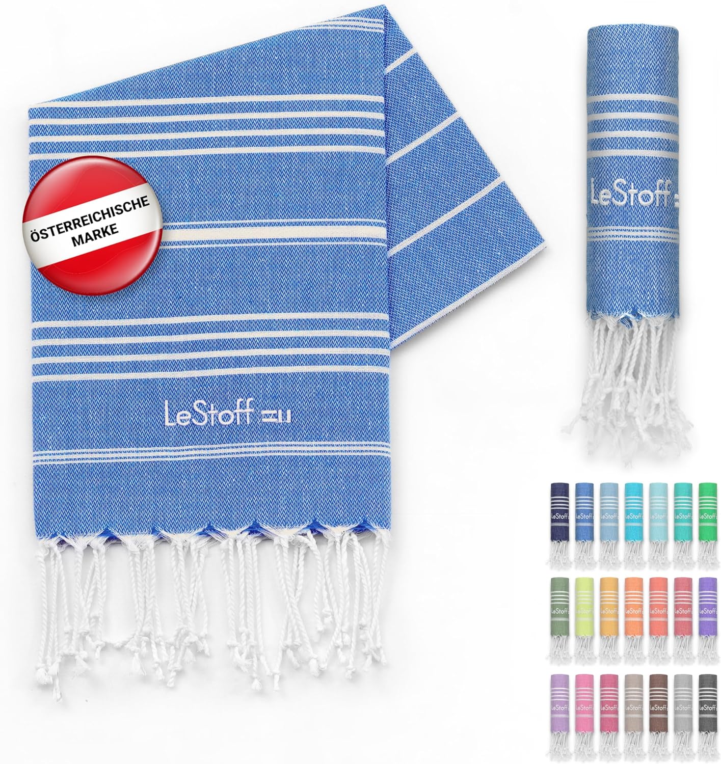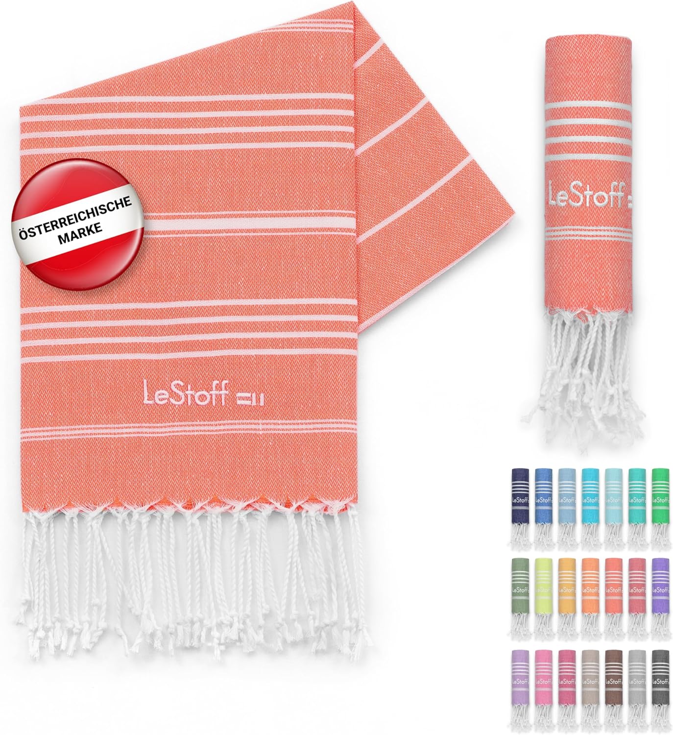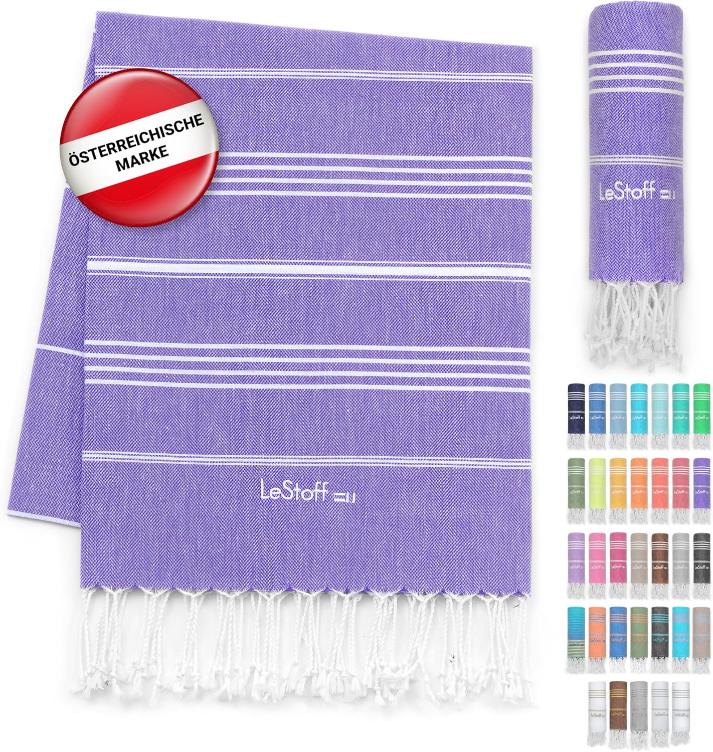• Многофункционална: независимо дали за сушене, като плажна кърпа, кърпа за сауна, спортна кърпа, кърпа за баня или кърпа за йога – нашата хамам кърпа LeStoff впечатлява със своята многофункционалност. Идеална за пътуване, защото благодарение на лекотата си и възможността за навиване, тя е перфектната кърпа за пътуване и къмпинг.