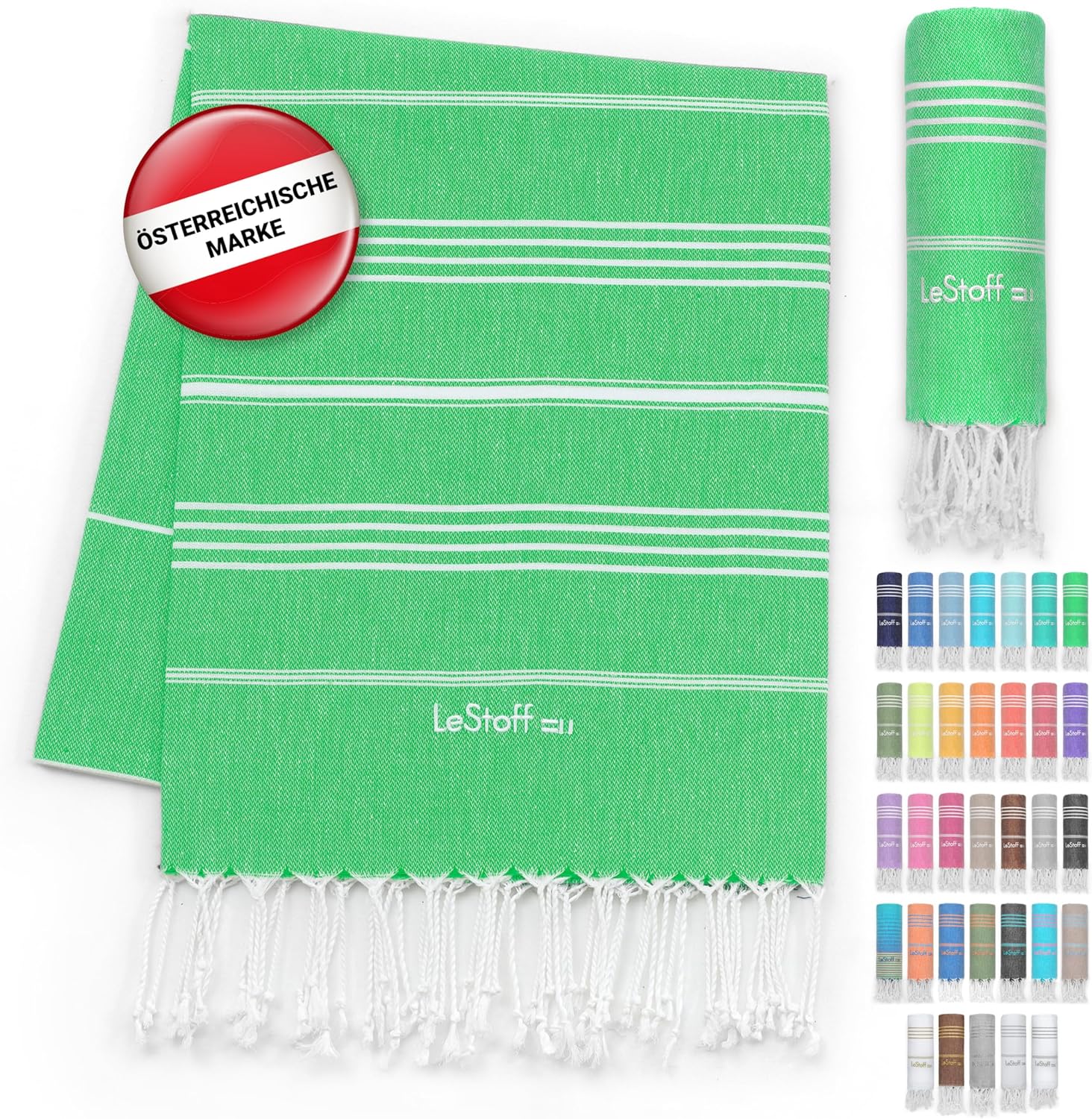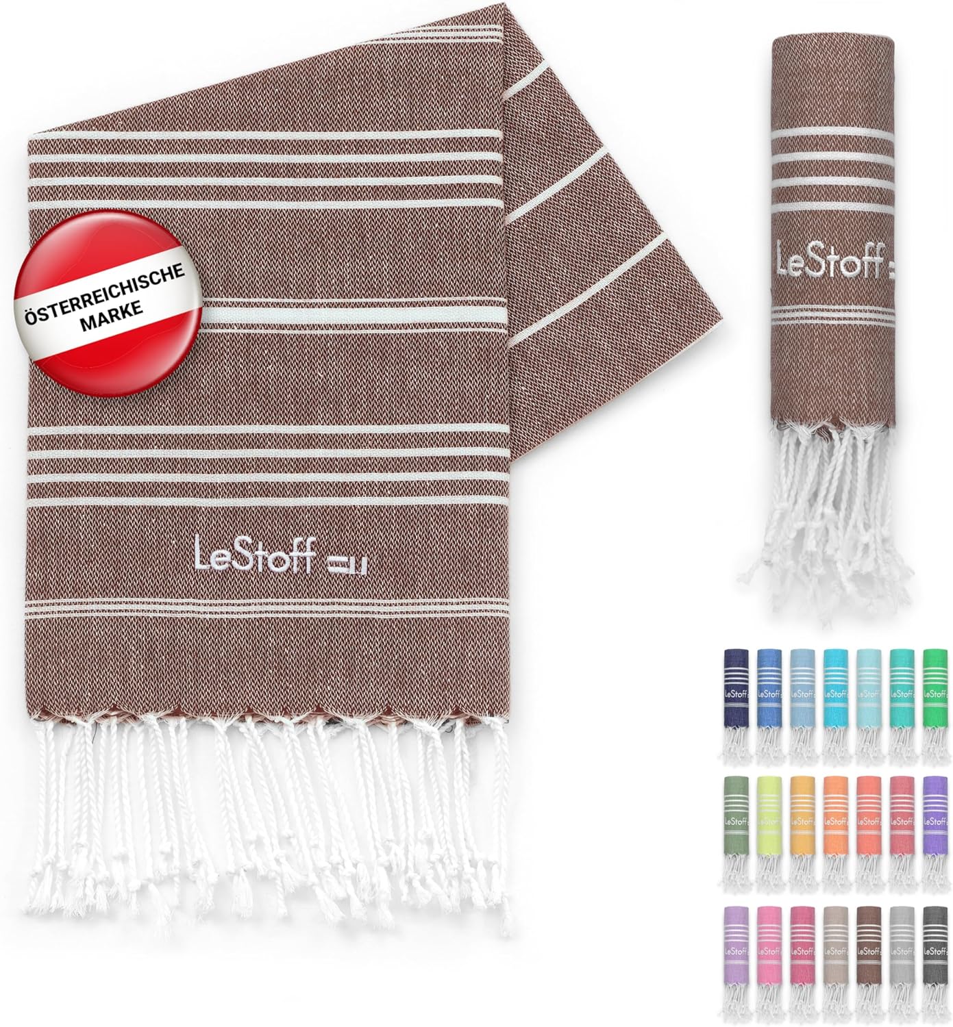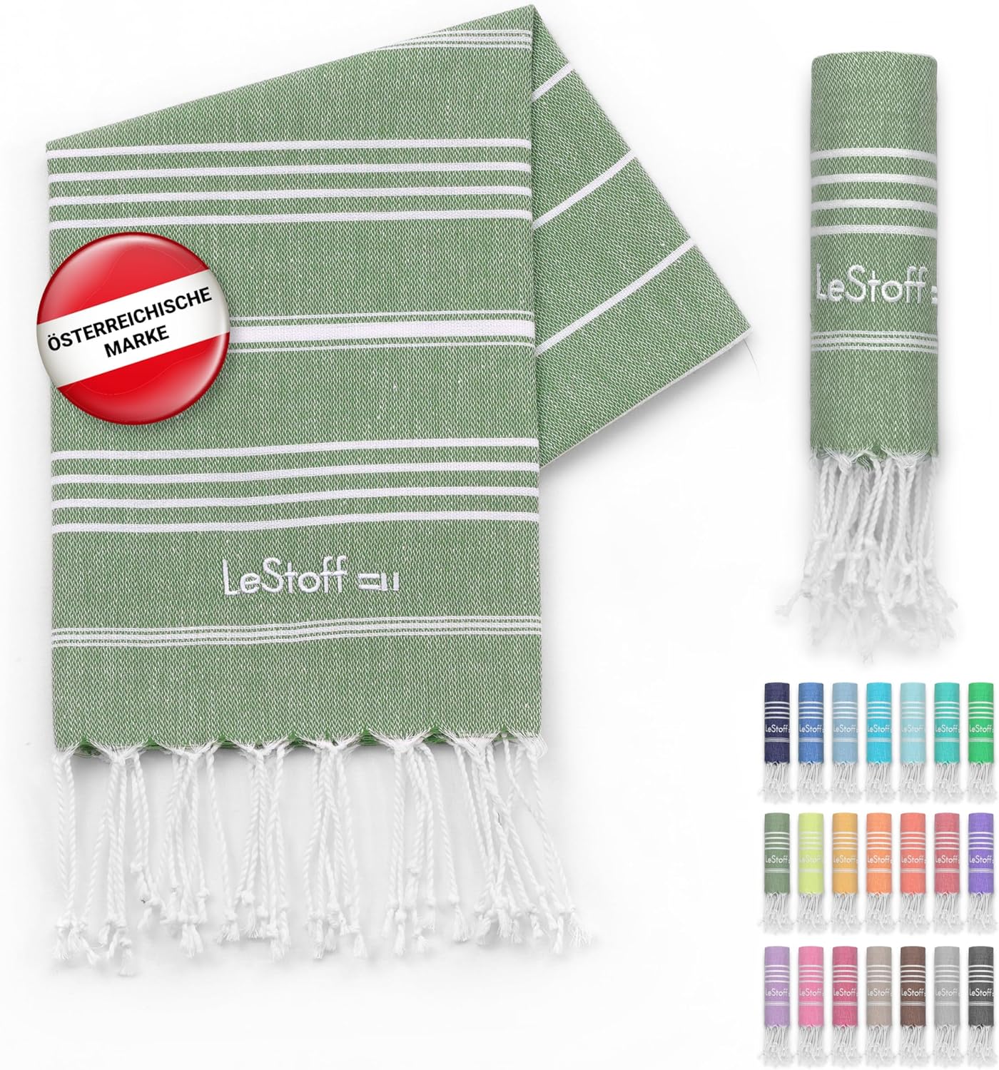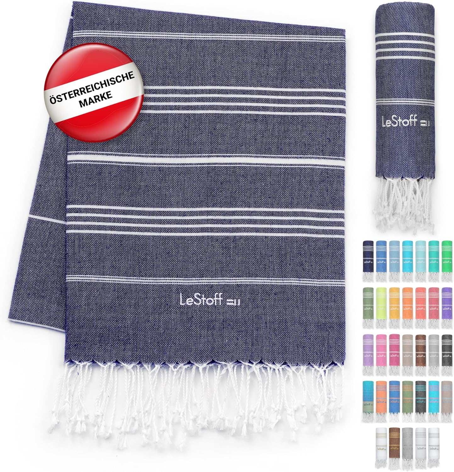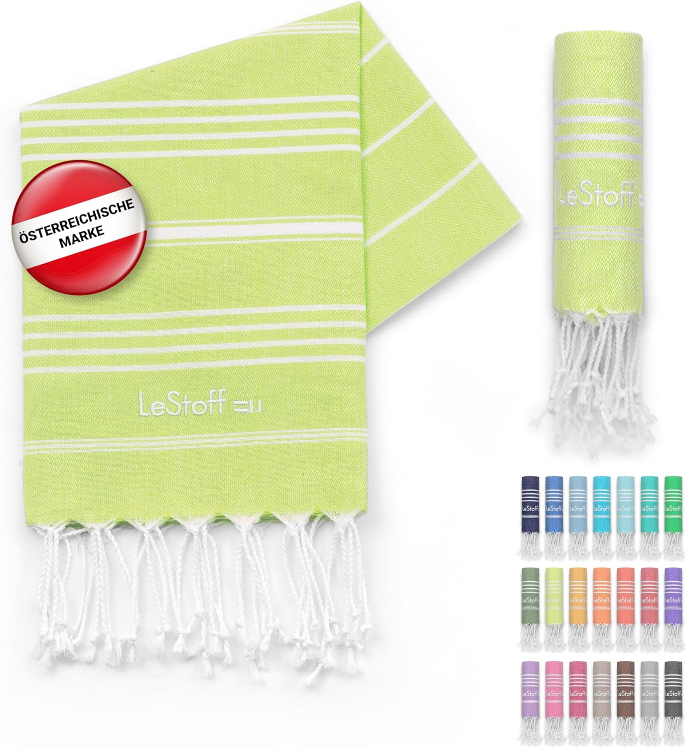 • Многофункционална: независимо дали за сушене, като плажна кърпа, кърпа за сауна, спортна кърпа, кърпа за баня или кърпа за йога – нашата хамам кърпа LeStoff впечатлява със своята многофункционалност. Идеална за пътуване, защото благодарение на лекотата си и възможността за навиване, тя е перфектната кърпа за пътуване и къмпинг.