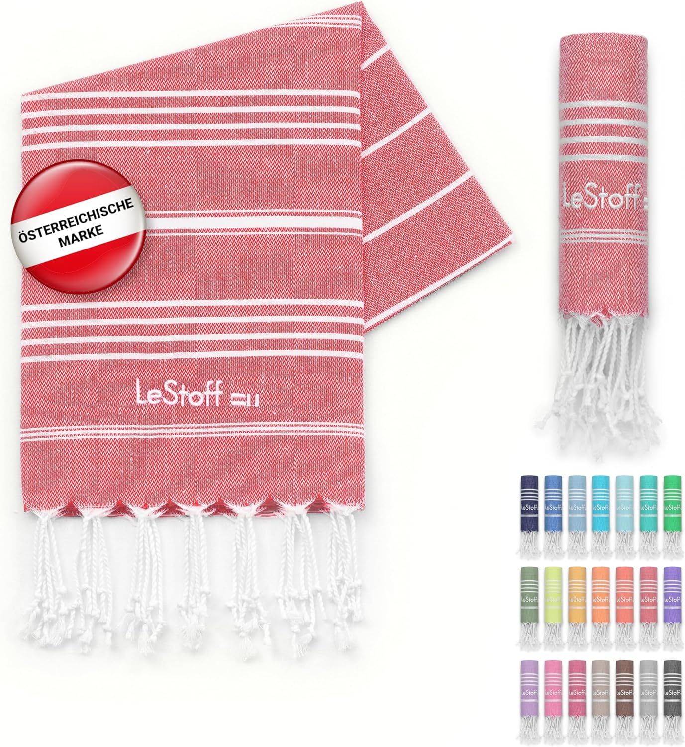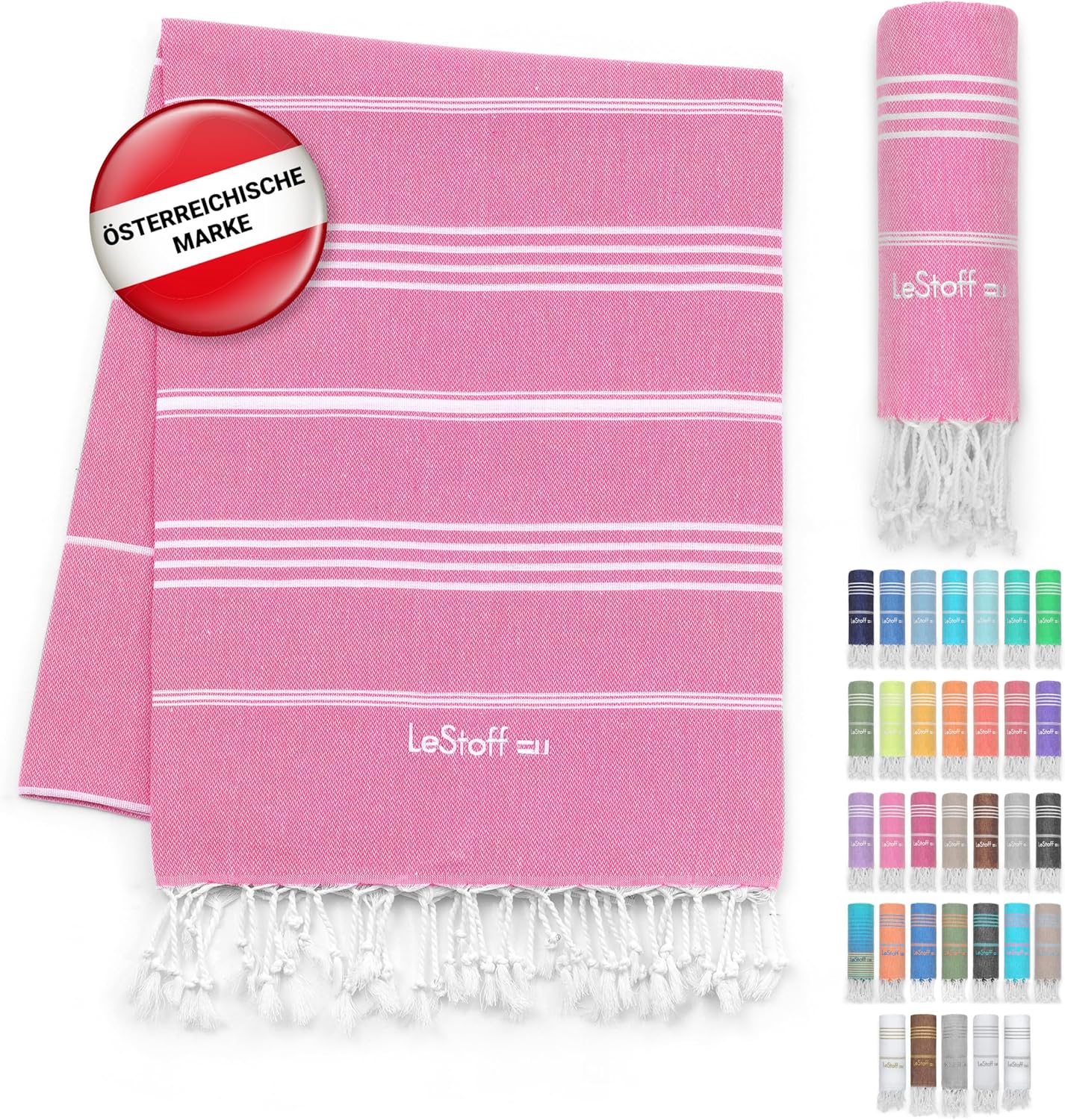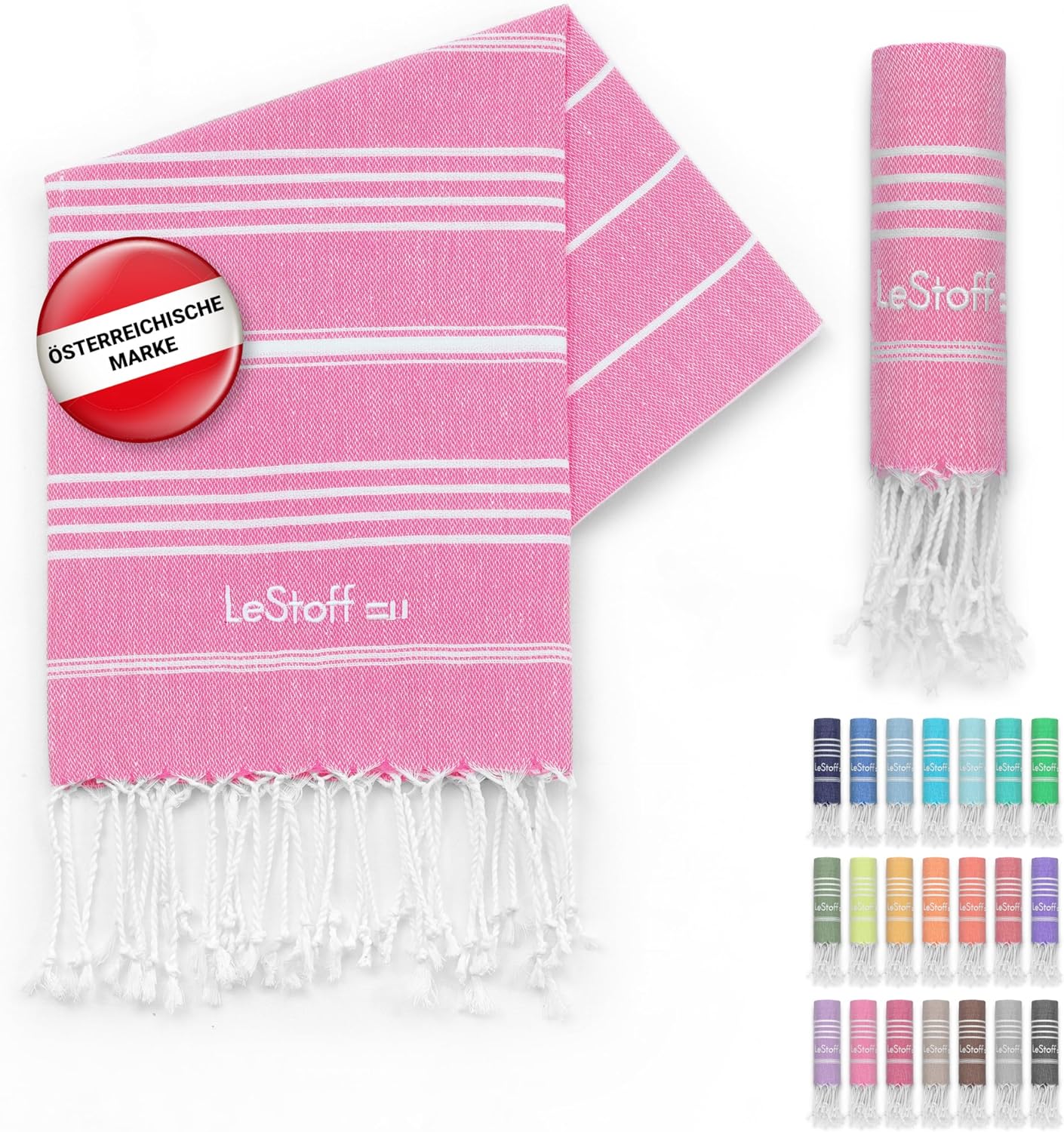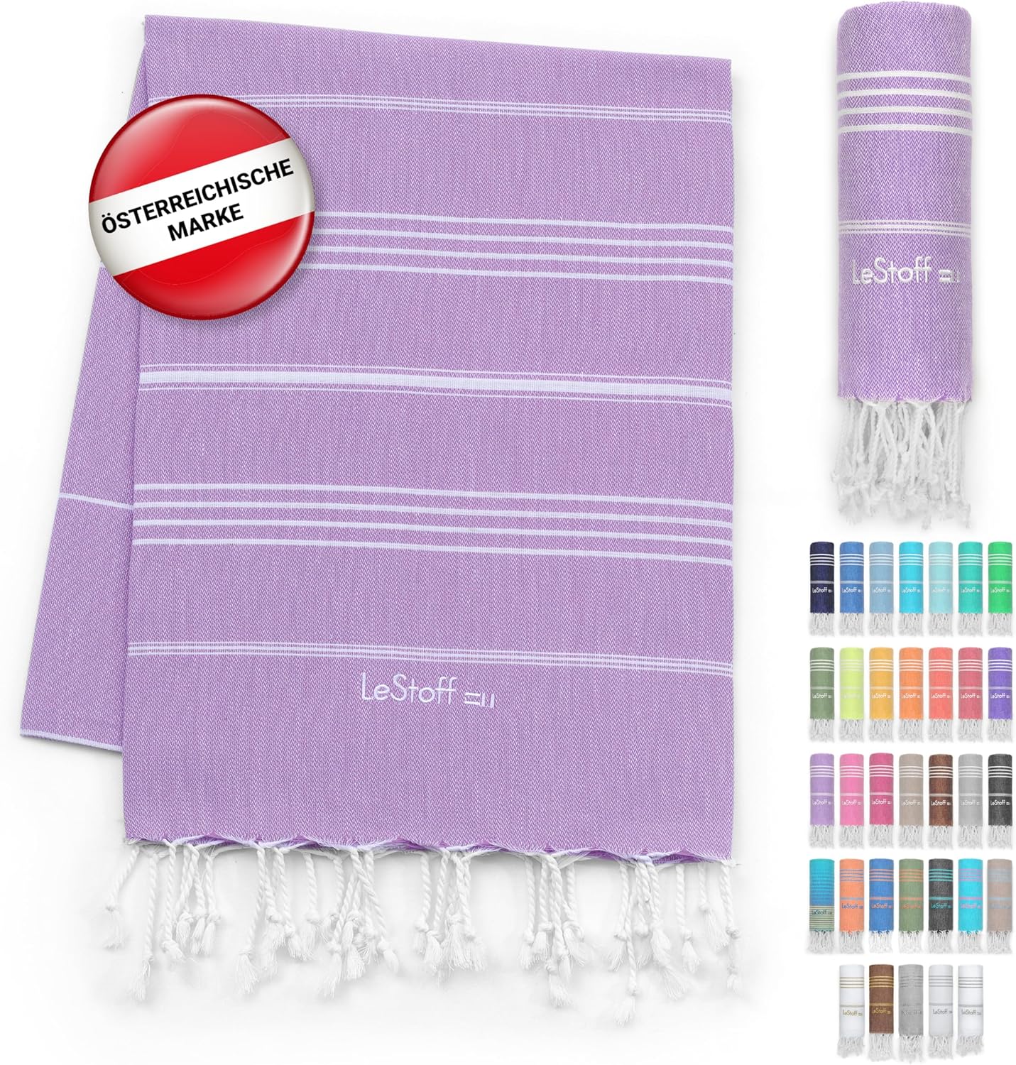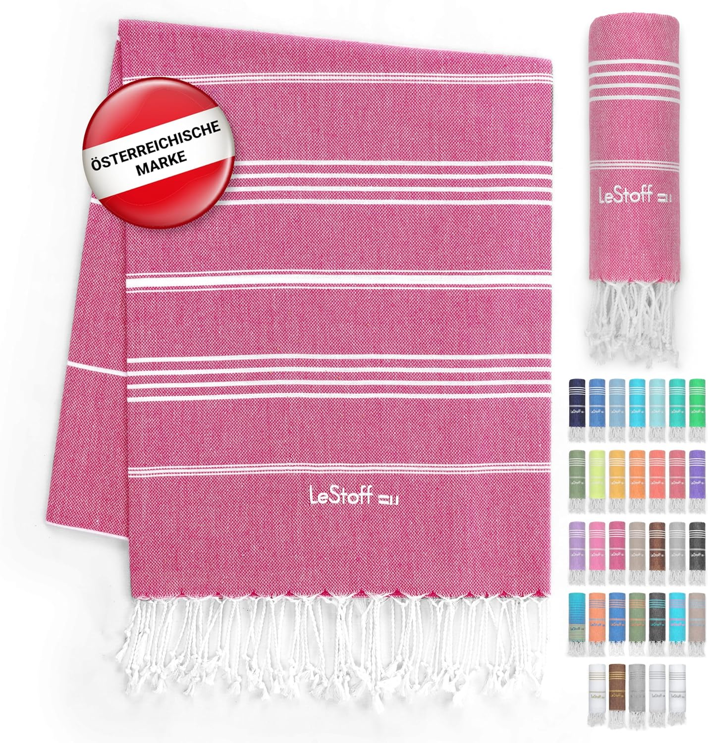 • Многофункционална: независимо дали за сушене, като плажна кърпа, кърпа за сауна, спортна кърпа, кърпа за баня или кърпа за йога – нашата хамам кърпа LeStoff впечатлява със своята многофункционалност. Идеална за пътуване, защото благодарение на лекотата си и възможността за навиване, тя е перфектната кърпа за пътуване и къмпинг.