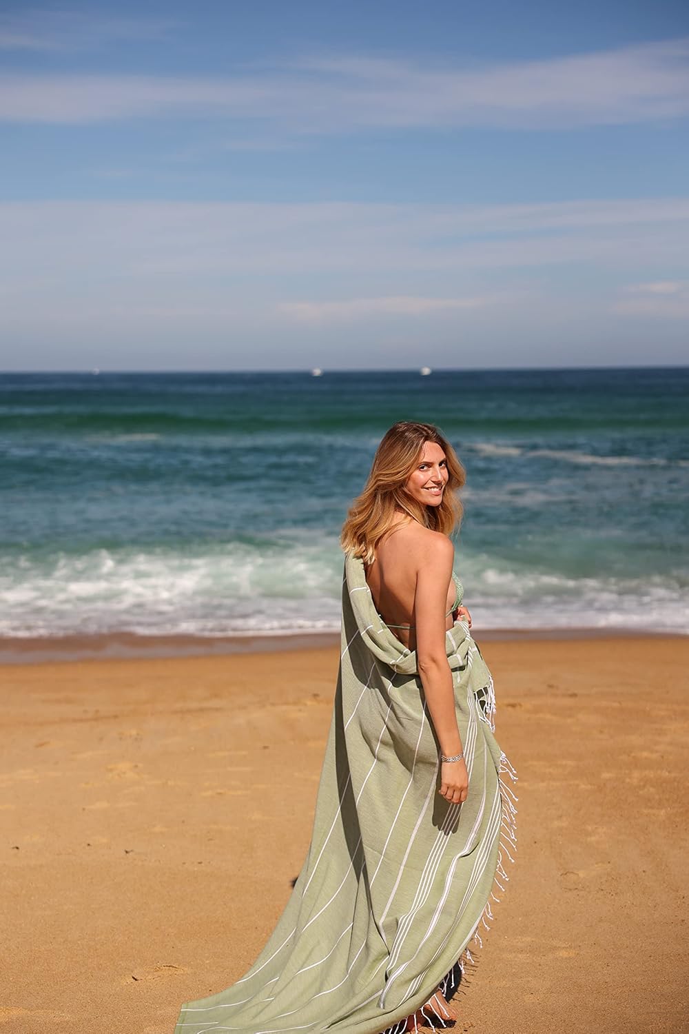 LeStoff Premium Hammam кърпа XXL 200 x 200 см - 100% органичен памук, предварително изпрана, устойчива, абсорбираща и бързосъхнеща, одеяло за пикник, плажна кърпа, за плаж, баня, йога, къмпинг и пътуване (маслинено сиво)