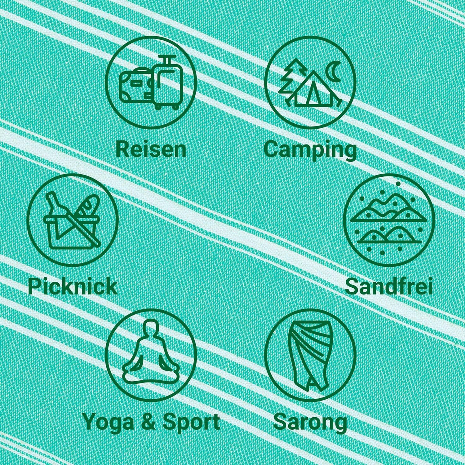 • Многофункционална: независимо дали за сушене, като плажна кърпа, кърпа за сауна, спортна кърпа, кърпа за баня или кърпа за йога – нашата хамам кърпа LeStoff впечатлява със своята многофункционалност. Идеална за пътуване, защото благодарение на лекотата си и възможността за навиване, тя е перфектната кърпа за пътуване и къмпинг.