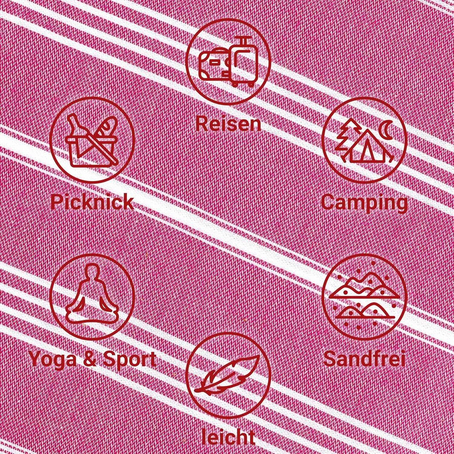 • Многофункционална: независимо дали за сушене, като плажна кърпа, кърпа за сауна, спортна кърпа, кърпа за баня или кърпа за йога – нашата хамам кърпа LeStoff впечатлява със своята многофункционалност. Идеална за пътуване, защото благодарение на лекотата си и възможността за навиване, тя е перфектната кърпа за пътуване и къмпинг.