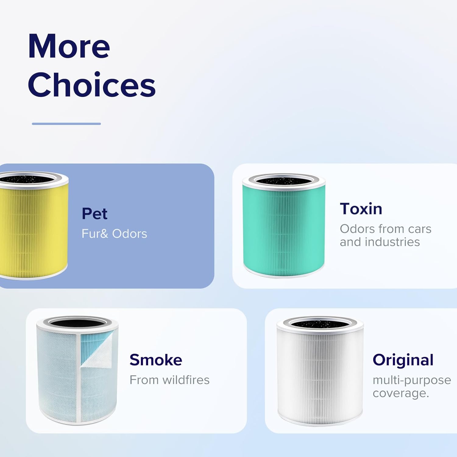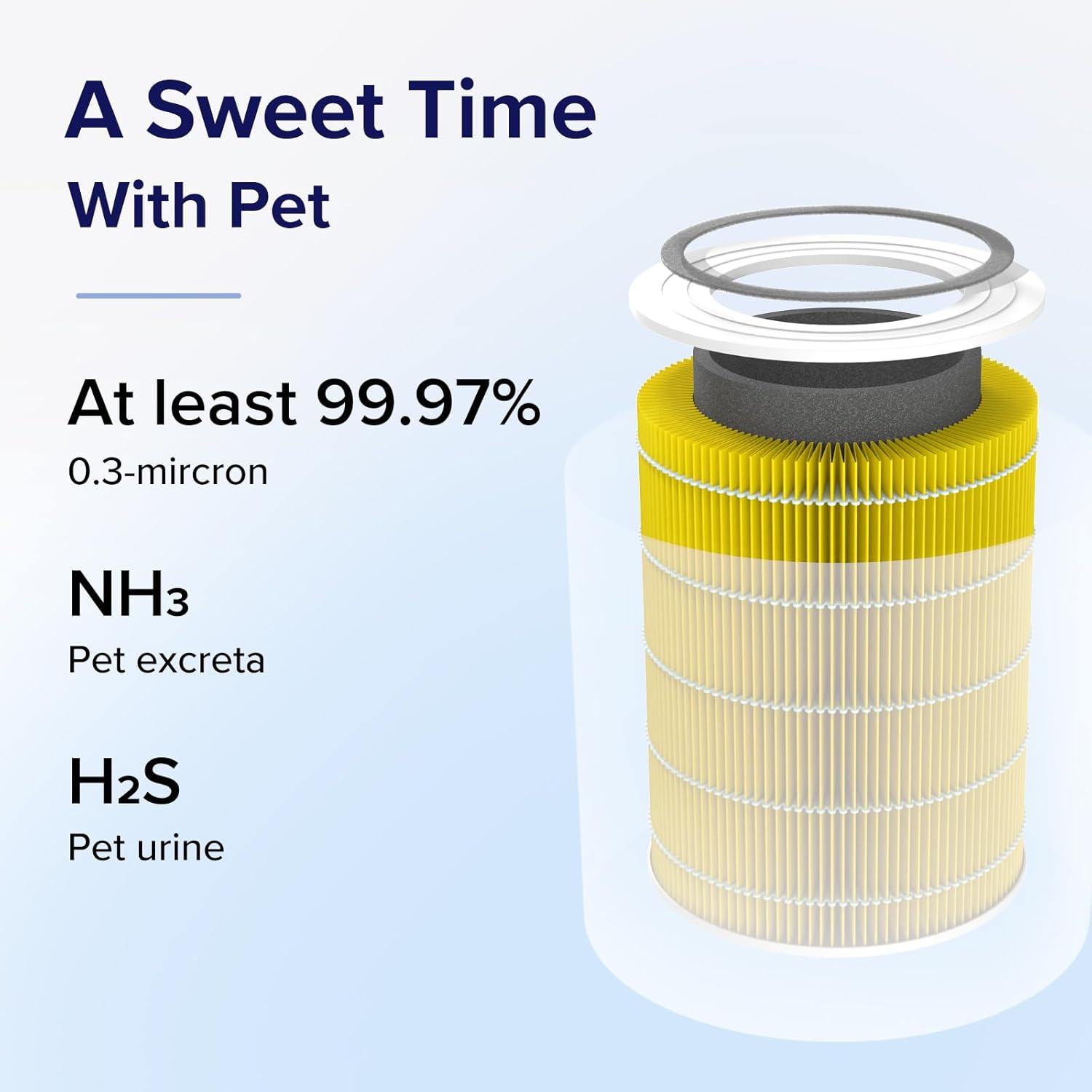 • 3 нива на филтрация: Състои се от фин предфилтър, H13 HEPA филтър и филтър с активен въглен. Премахва 99,97% прах, полени, дим, миризми и косми от домашни любимци. Филтрира също частици с размер до 0,3 микрона и филтрира замърсяването на въздуха от PM 2,5. Идеален за страдащи от алергии, астматици, собственици на домашни любимци, пушачи и деца.