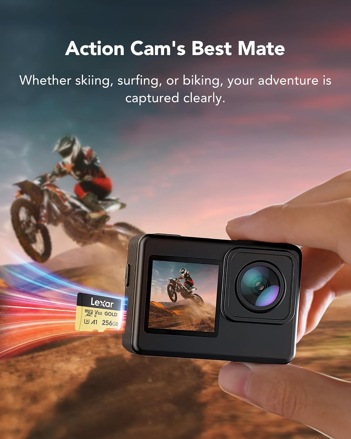 Micro SD картите са с клас на скорост 10 и използват UHS-I технология, за да осигурят скорост на трансфер до 100 MB/s. Тези карти с висок капацитет ви осигуряват скоростта и пространството за съхранение, от които се нуждаете, за да записвате, прехвърляте и споделяте повече приключения в движение.