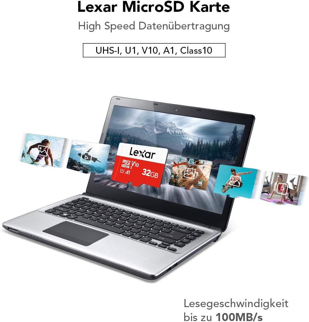 • Картата памет Lexar Micro SD 32GB поддържа UHS-I, U1, A1, клас на скорост 10, клас на скорост на видео 10 (V10), което осигурява бърза скорост на четене, бърз трансфер на файлове, плавно и непрекъснато заснемане на снимки.
