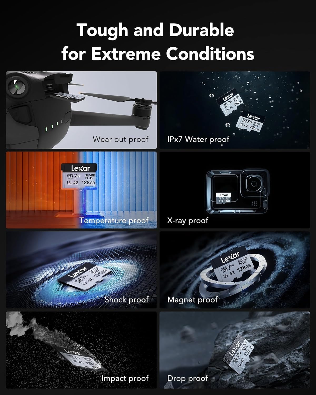• Заснемайте видео с толкова детайли, колкото и вие. Картата Lexar Silver Plus UHS-I micro SD с маркировка V30 и U3 е проектирана за запис на непрекъснати изображения без пропускане на запис и лесно записва Ultra HD видеоклипове с до 4K 60 кадъра в секунда.