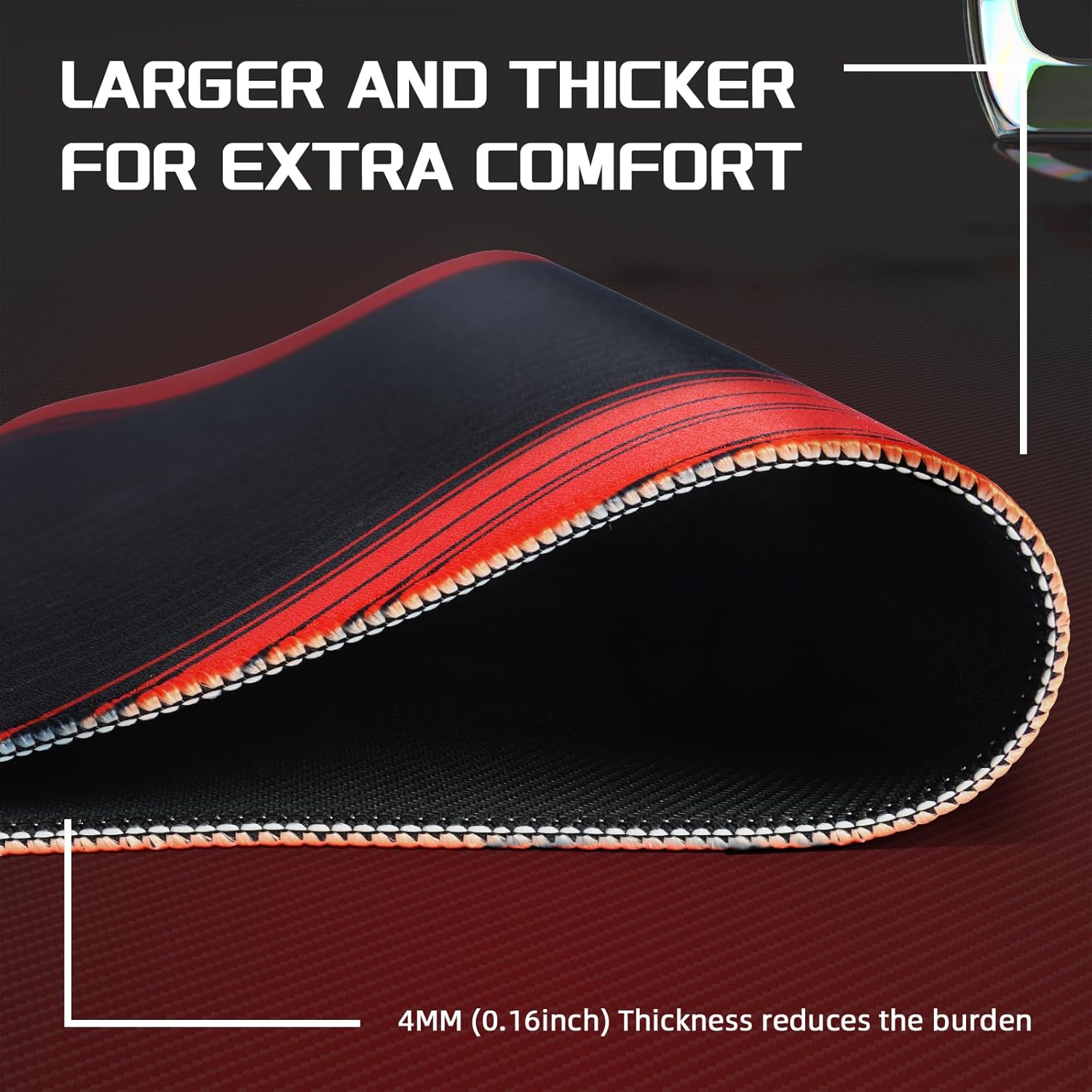• Ултра дебела и удобна: Повърхността с размери 44 x 40 см (17,32 x 15,75 инча) осигурява достатъчно място за мишката по време на състезателни игри и е подходяща за вашата настолна конфигурация. Дебелината от 4 мм намалява стреса, осигурява надеждна опора за непрекъснатото движение на мишката, като същевременно осигурява ефективно омекотяване на китката, намалявайки умората, причинена от продължителна игра.