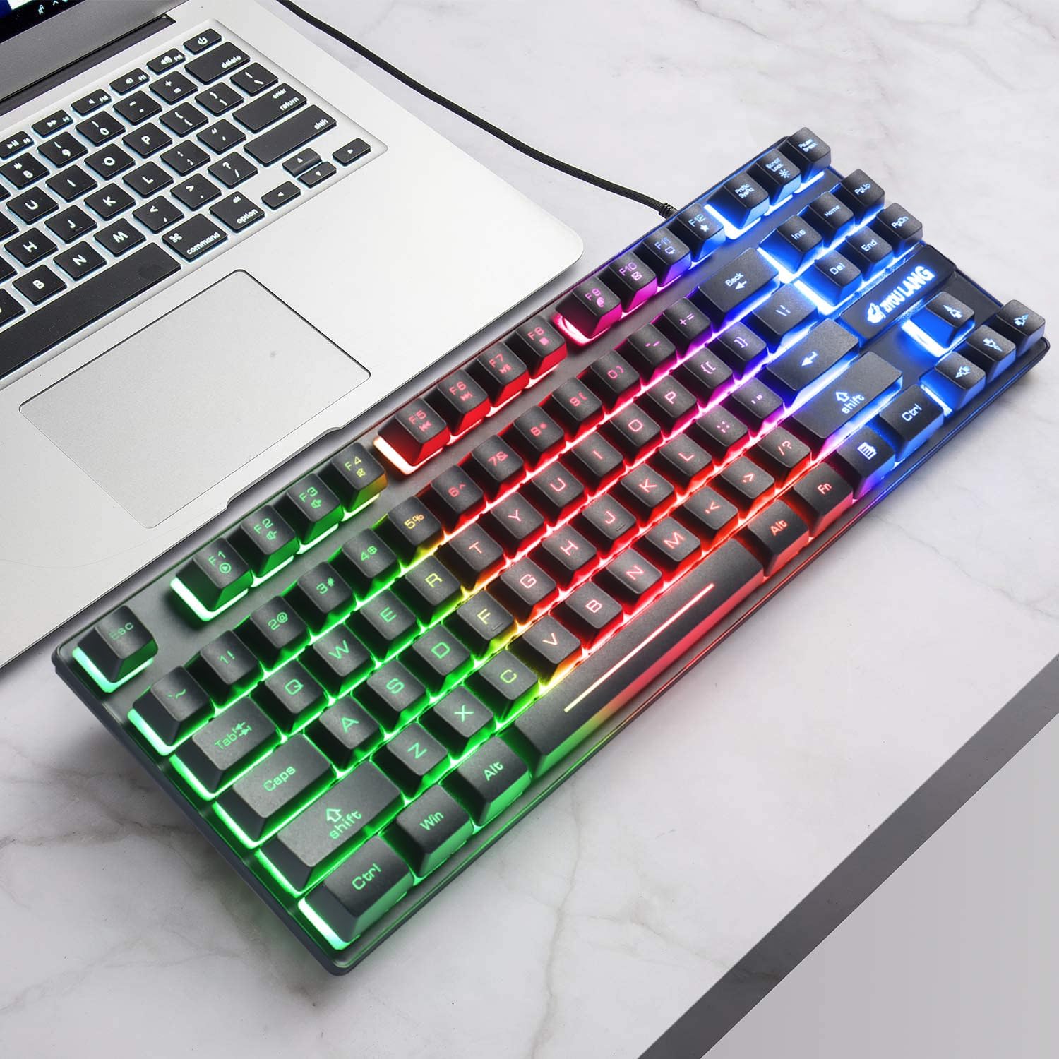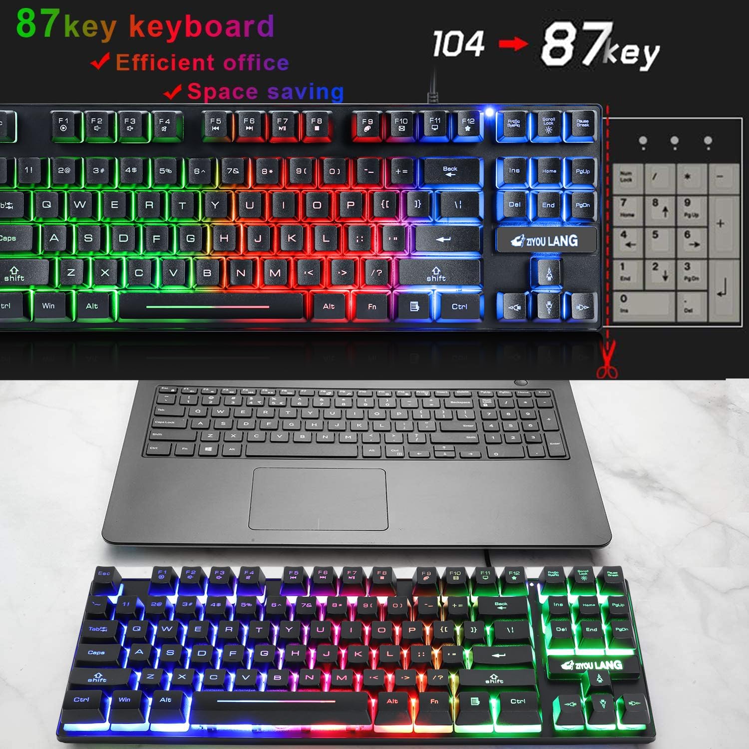 LexonElec K16 Жична геймърска клавиатура с 87 клавиша, дъгова LED светлина и подсветка, водоустойчива ергономична USB 16 клавиша, анти-ghosting, за офис, машинописни машини и игри