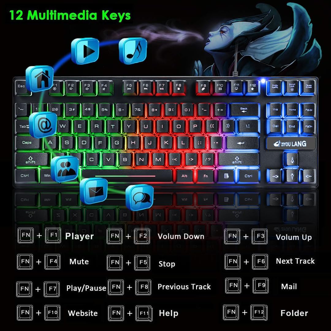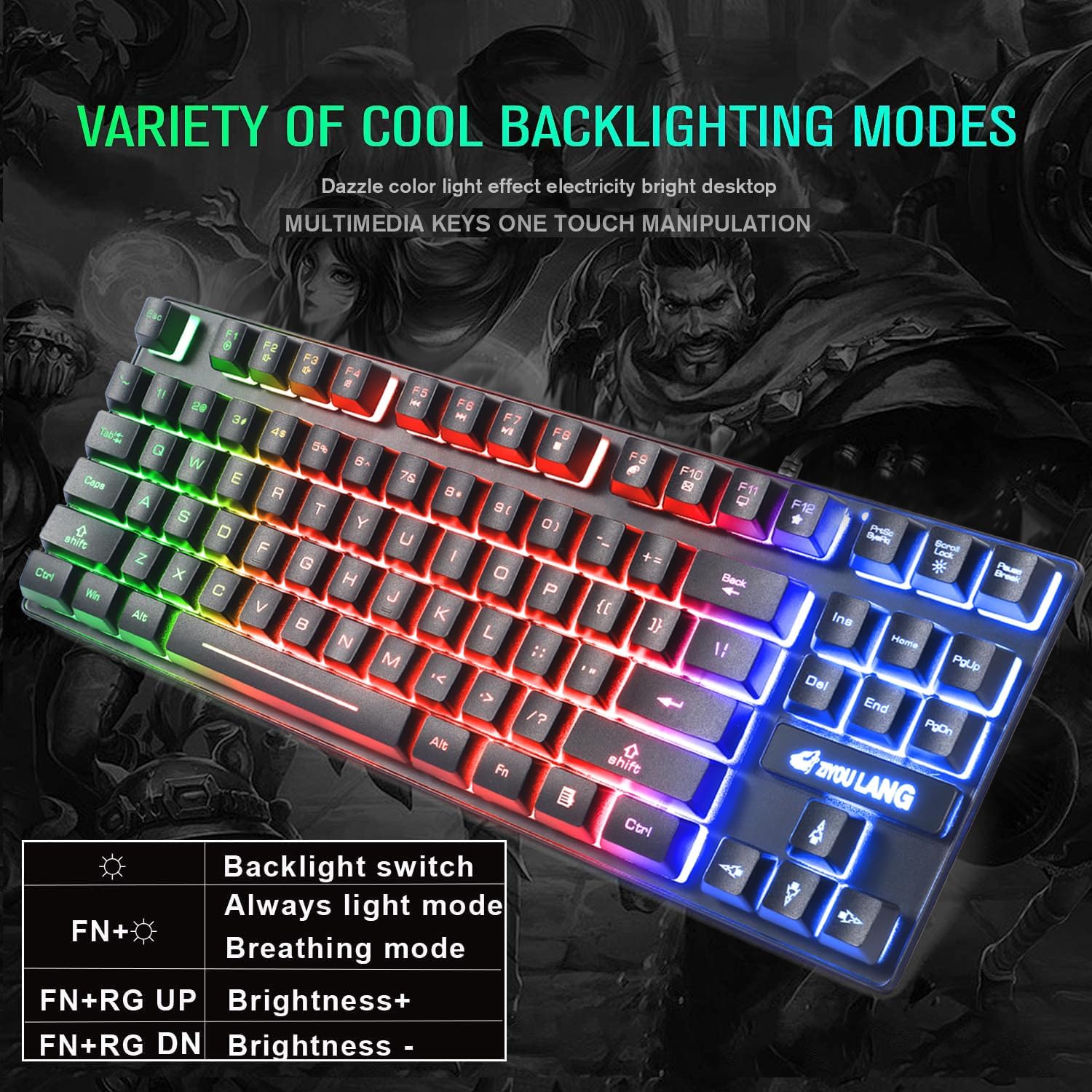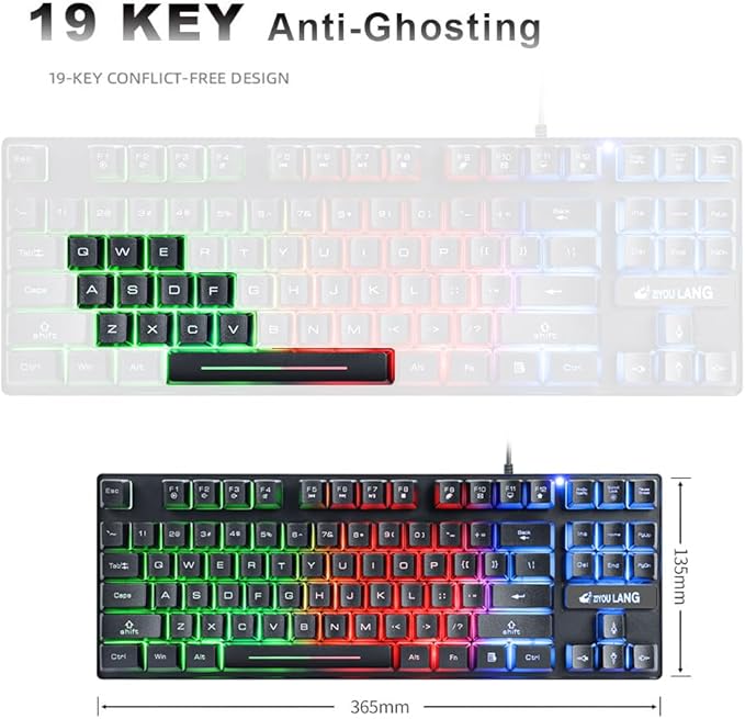 • Клавиатурата има 87 клавиша, 19 клавиша без конфликт, плаващи капачки на клавишите, подсилен интервал. Специално проектирани клавиши за подобрена издръжливост и тактилна обратна връзка, 60 милиона натискания, насладете се на висококачествено игрово изживяване с бърза реакция.