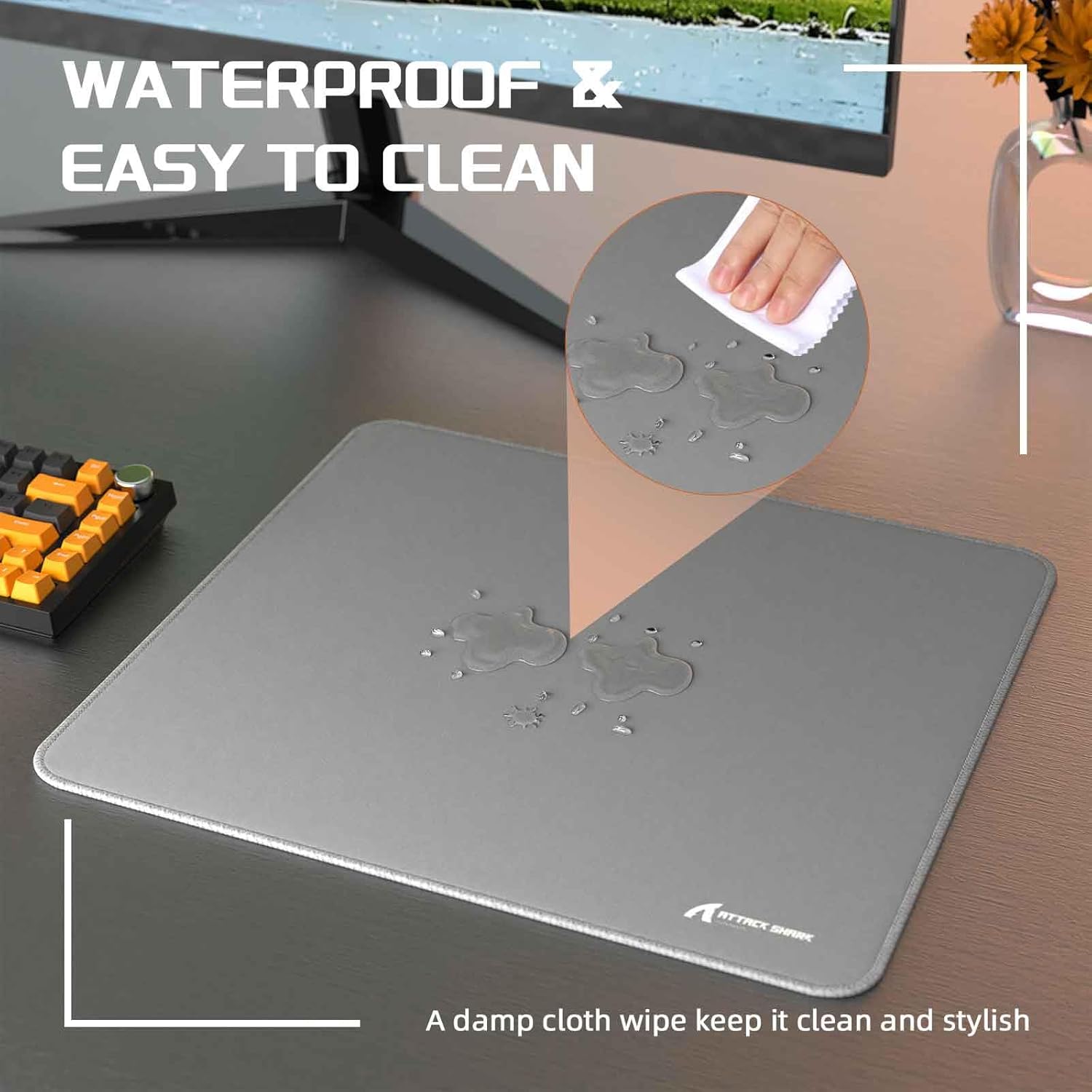 • Високоефективна водоустойчива подложка за мишка: Повърхността е снабдена с 5S технологично покритие, което значително подобрява водо- и мръсотияоустойчивостта и ефективно предотвратява различни водни пръски. За петна, просто я избършете внимателно, за да завършите ежедневното почистване.