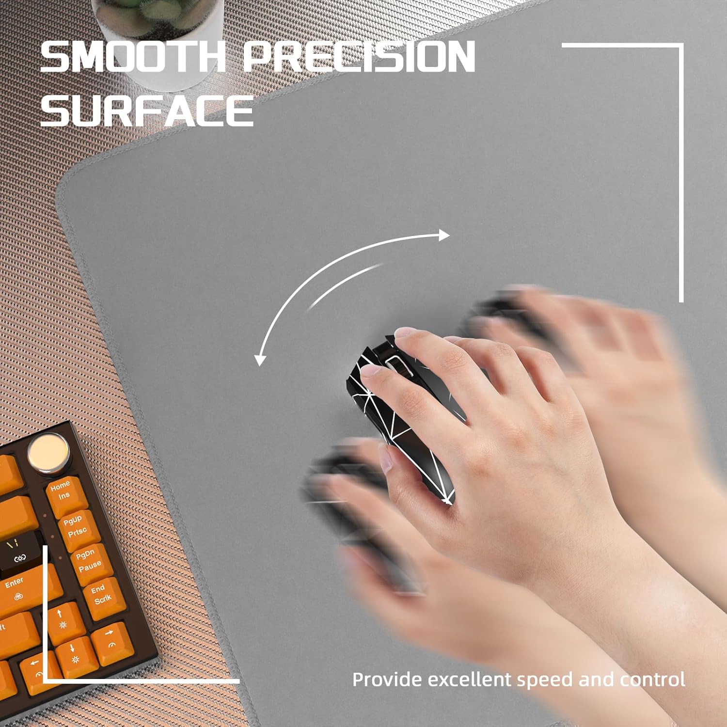 • Неплъзгаща се гумена основа: Удебелената гумена основа и криптираната неплъзгаща се текстура увеличават триенето. Дори ако играта изисква изключително интензивни движения на ръцете, здравата подложка за мишка може да осигури висока стабилност на вашите игрови операции.