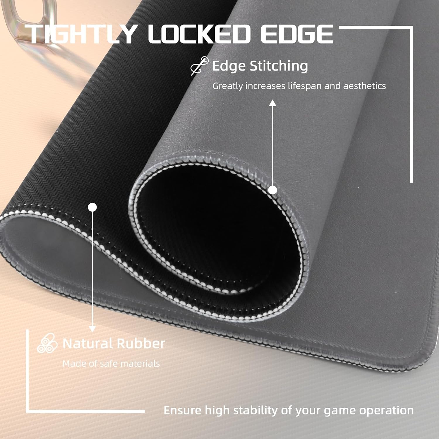 • Прецизен, ултратънък заключващ ръб: противоплъзгащата подложка за мишка има прецизно зашит 360-градусов ръб за защита от износване, който позволява на ръцете ви да се плъзгат безпрепятствено. Износоустойчивата повърхност не се износва при продължителна употреба, което би довело до намаляване на контрола, и може да издържи на ежедневна игра.