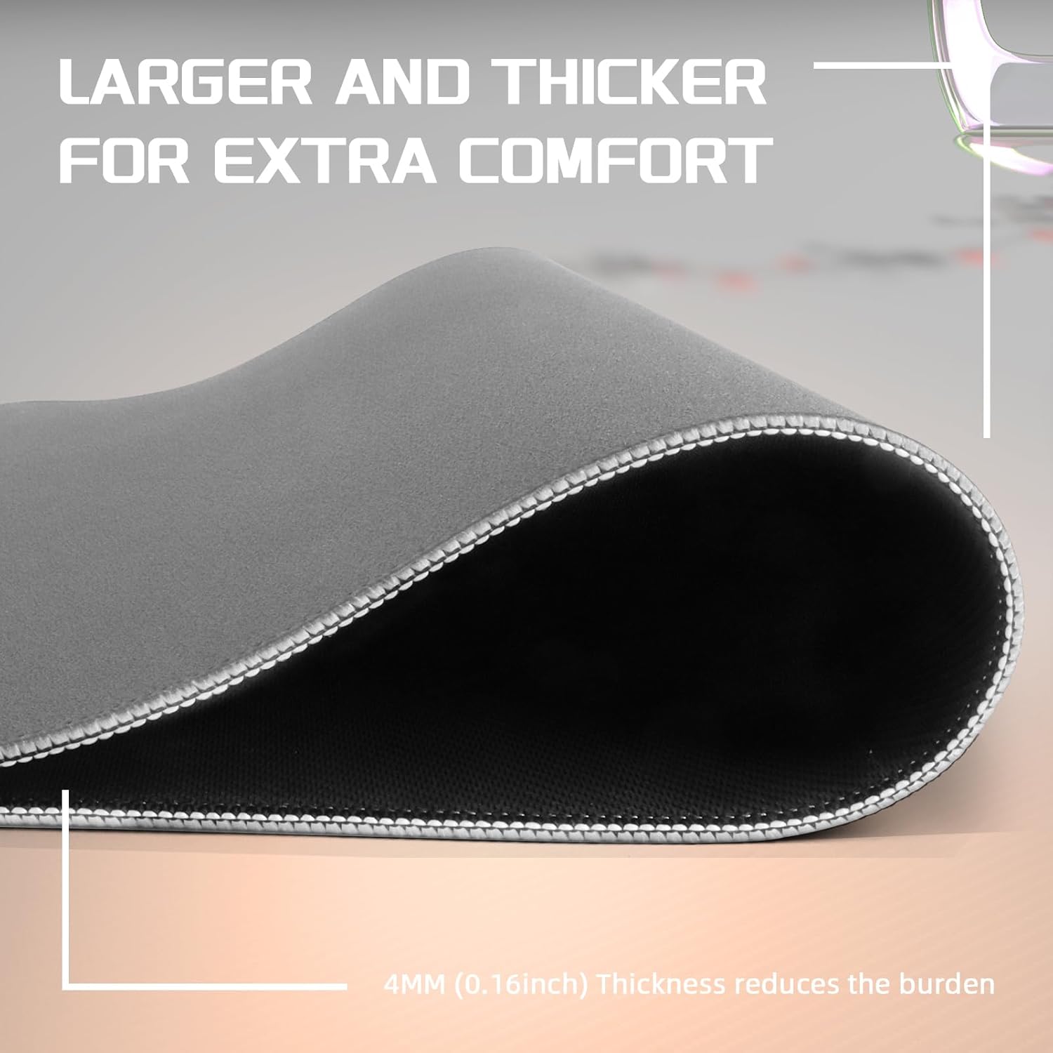 • Ултра дебела и удобна: Повърхността с размери 44 x 40 см (17,32 x 15,75 инча) осигурява достатъчно място за мишката по време на състезателни игри и е подходяща за вашата настолна конфигурация. Дебелината от 4 мм намалява стреса, осигурява надеждна опора за непрекъснатото движение на мишката, като същевременно осигурява ефективно омекотяване на китката, намалявайки умората, причинена от продължителна игра.