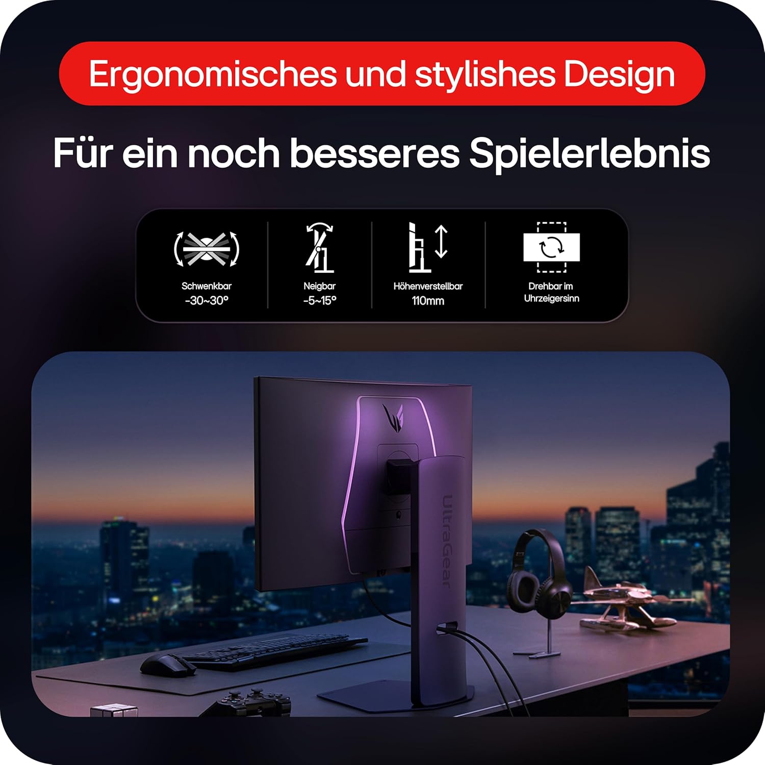 • Силно цветопредаване с 95% DCI-P3 и яркост 400 cd/m2 / 2 x HDMI 2.1, 1 x DisplayPort 1.4, 1 x USB-C (65 W мощност за зареждане), 2 x USB 2.0 (надолу), RJ-45 и жак за слушалки/интелигентно забавление благодарение на операционната система webOS24, която, освен всичко друго, осигурява директен достъп до стрийминг приложения.