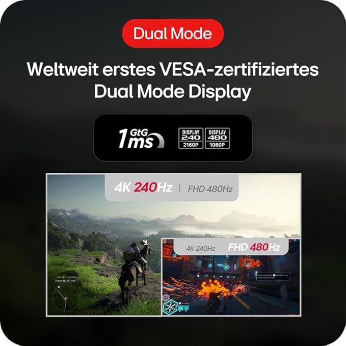 • Прецизно представяне благодарение на бързото време за реакция от 1 ms (GtG) и честотата на опресняване от 144 Hz / сертификацията "NVIDIA G-SYNC Compatible" и AMD FreeSync Premium осигуряват мека структура на изображението