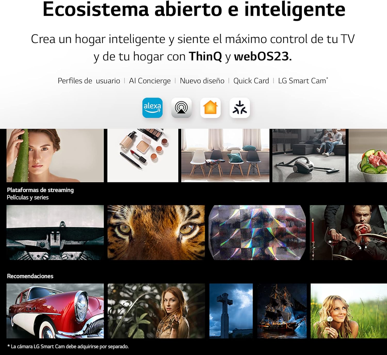 • Смарт телевизор: webOS 23 (LG ThinQ AI и AI Concierge) с Google Assistant, Amazon Alexa, съвместим с Amazon Echo, Google Home, Apple AirPlay 2 и HomeKit; Home Dashboard, поддържа WOW интерфейс, включително дистанционно управление LG и 2x AA батерии