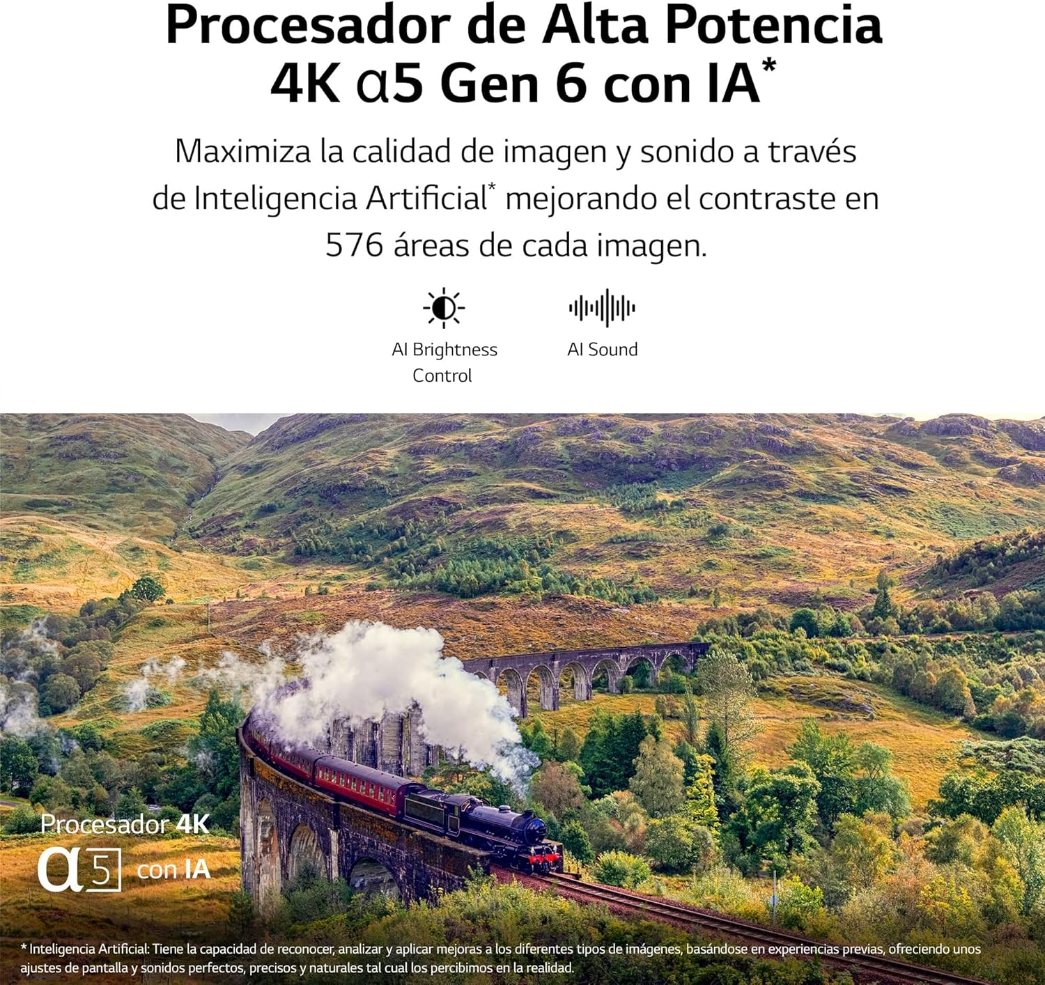 • Процесор: α5 Gen6 4K AI процесор с AI контрол на яркостта и AI звук (Virtual 5.1 Upmix); Функции за игри: Съвместим с HGiG, Game Optimizer (ALLM)