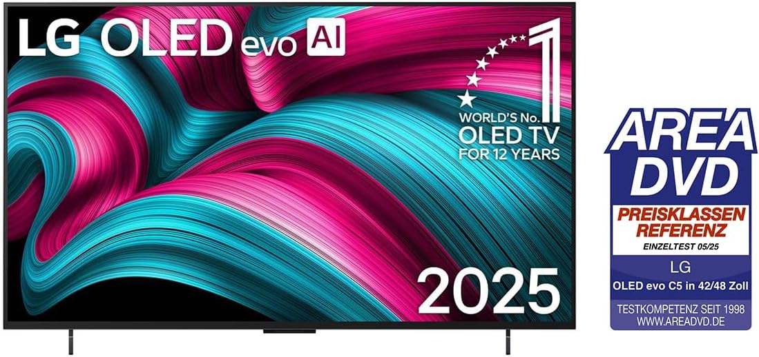 LG OLED42C5ELB телевизор 42-инчов (106 см) 4K OLED evo AI телевизор (α9 Gen8 4K AI процесор, webOS 25, 120Hz (VRR до 144Hz)) [Моделна година 2025]