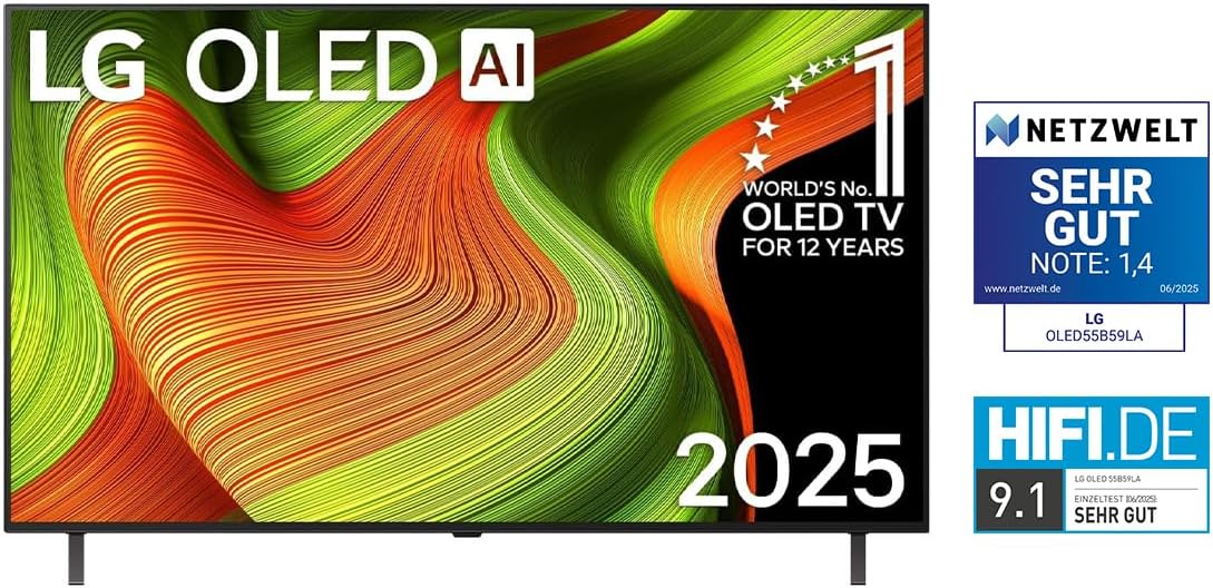 LG OLED55B59LA телевизор 55-инчов (139 см) 4K OLED AI телевизор (α8 Gen2 4K AI процесор, webOS 25, 120Hz) [Моделна година 2025]