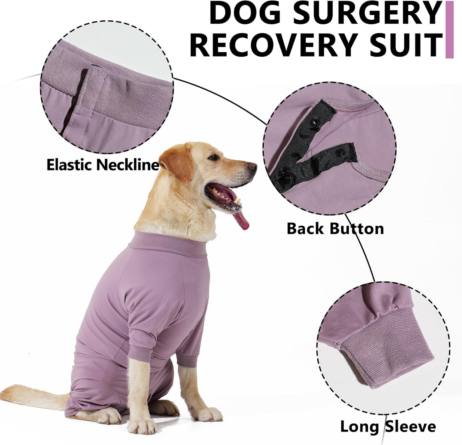 LIANZIMAU Следоперативно боди за кучета за женски и мъжки кучета - Хирургично боди с дълъг ръкав за женски и средно големи кучета, еднокомпонентен възстановяващ костюм, алтернатива на конус за врата