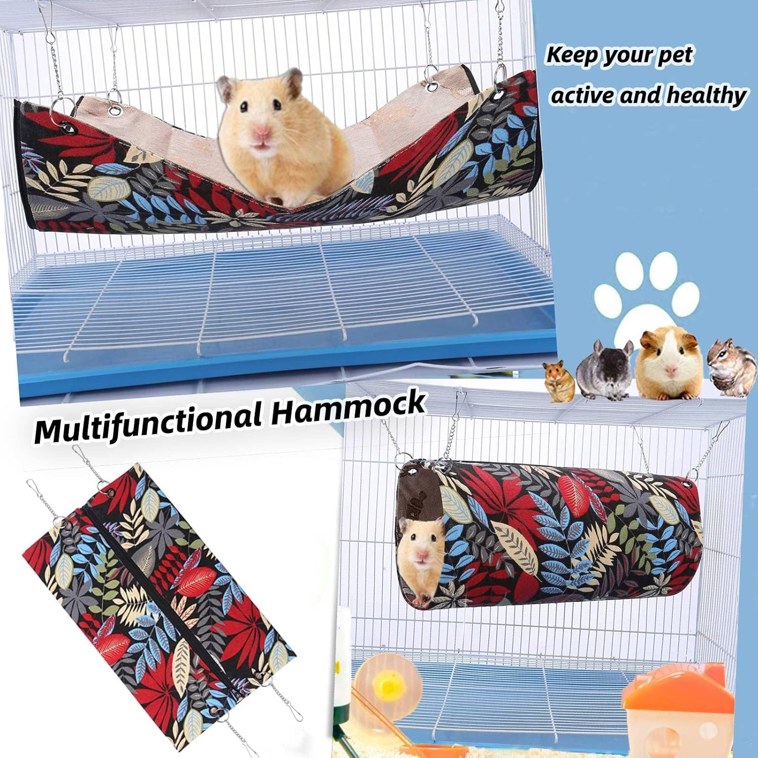 • Лесно за употреба и почистване: малкото легло за животни се закрепва лесно и бързо към клетките с включените 3 метални куки, подходящи за клетки за домашни любимци със стандартен размер. Тунелите за домашни любимци и тръбните играчки могат да се използват многократно след измиване.