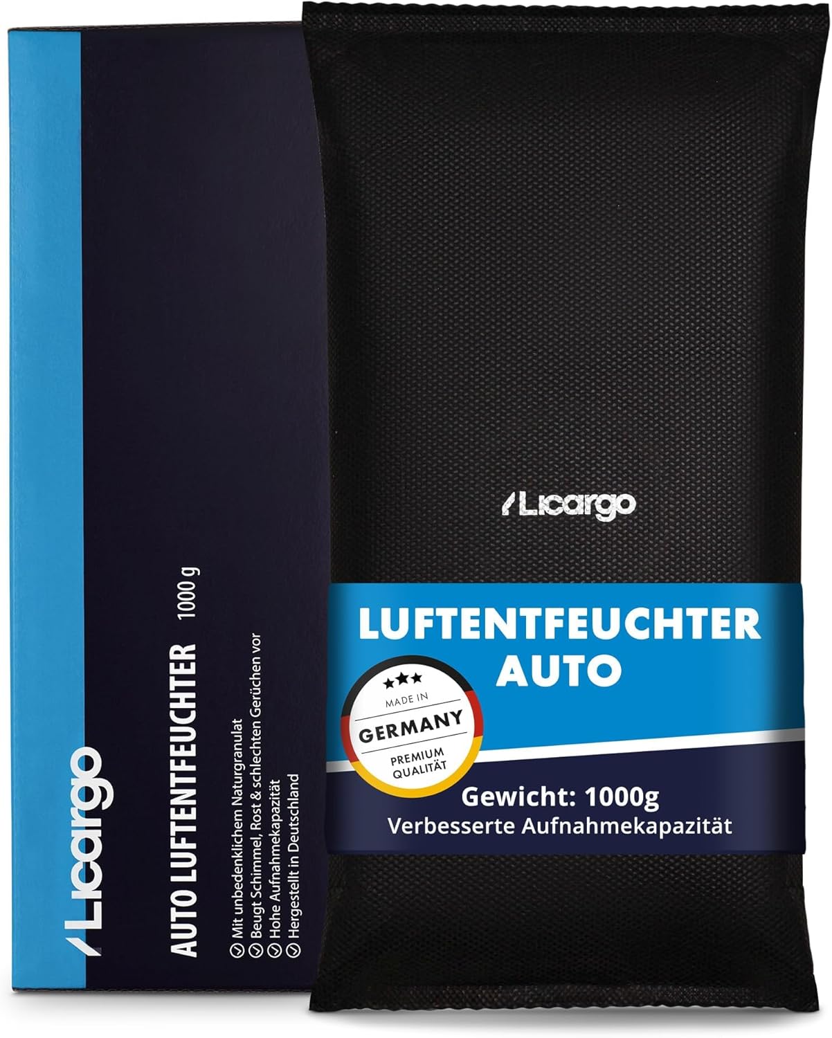 LICARGO Автомобилен влагоабсорбатор, 1 кг, Прозорци против замъгляване и ясна видимост, Натурални гранули, За многократна употреба, Произведено в Германия, Автомобилен влагоабсорбатор срещу влага и образуване на мухъл, Автомобилен влагоабсорбатор