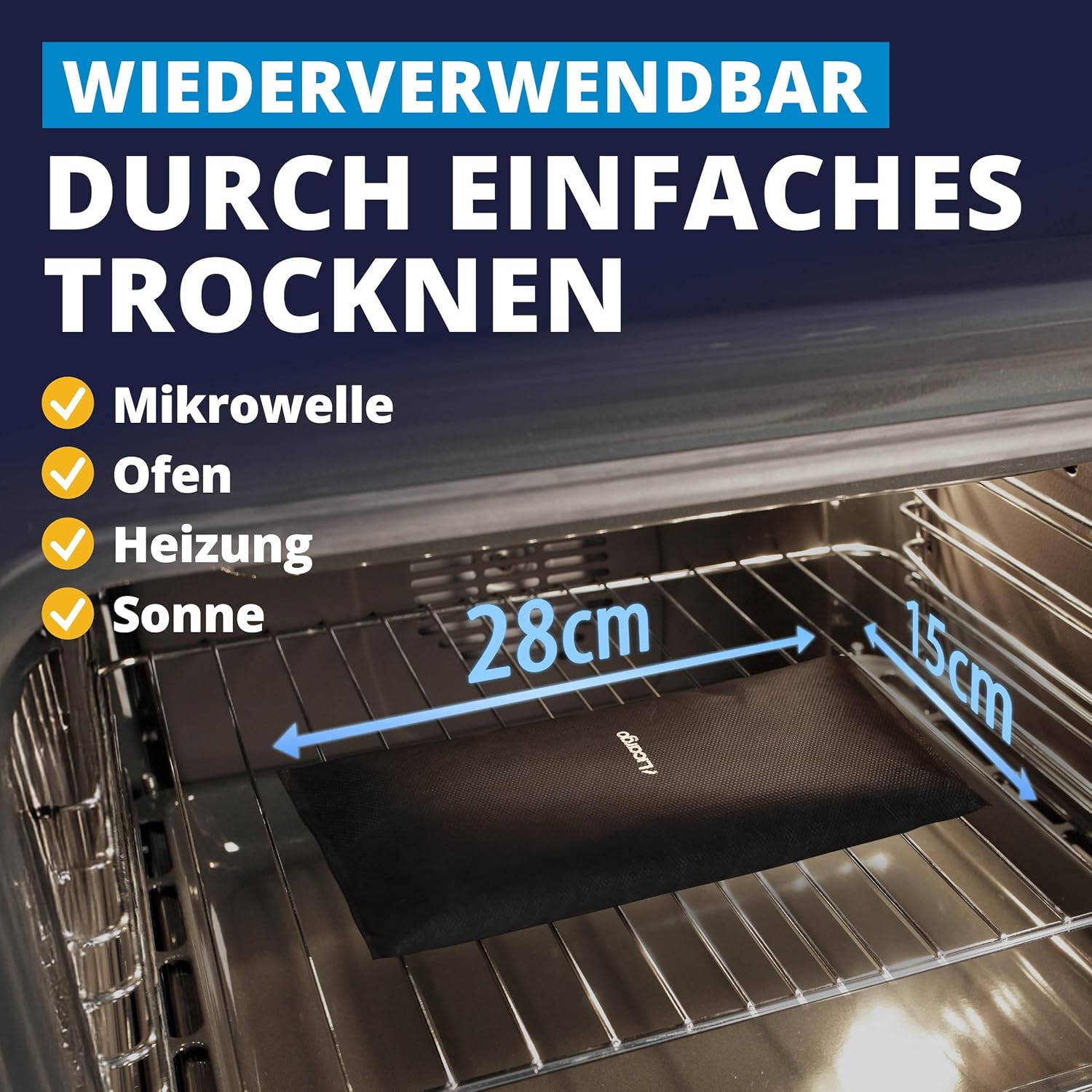 • Многократна употреба и бързо съхнене – поставете в микровълнова фурна (на интервали) или на затопляне. След това е готов за повторна употреба - може да се използва многократно.