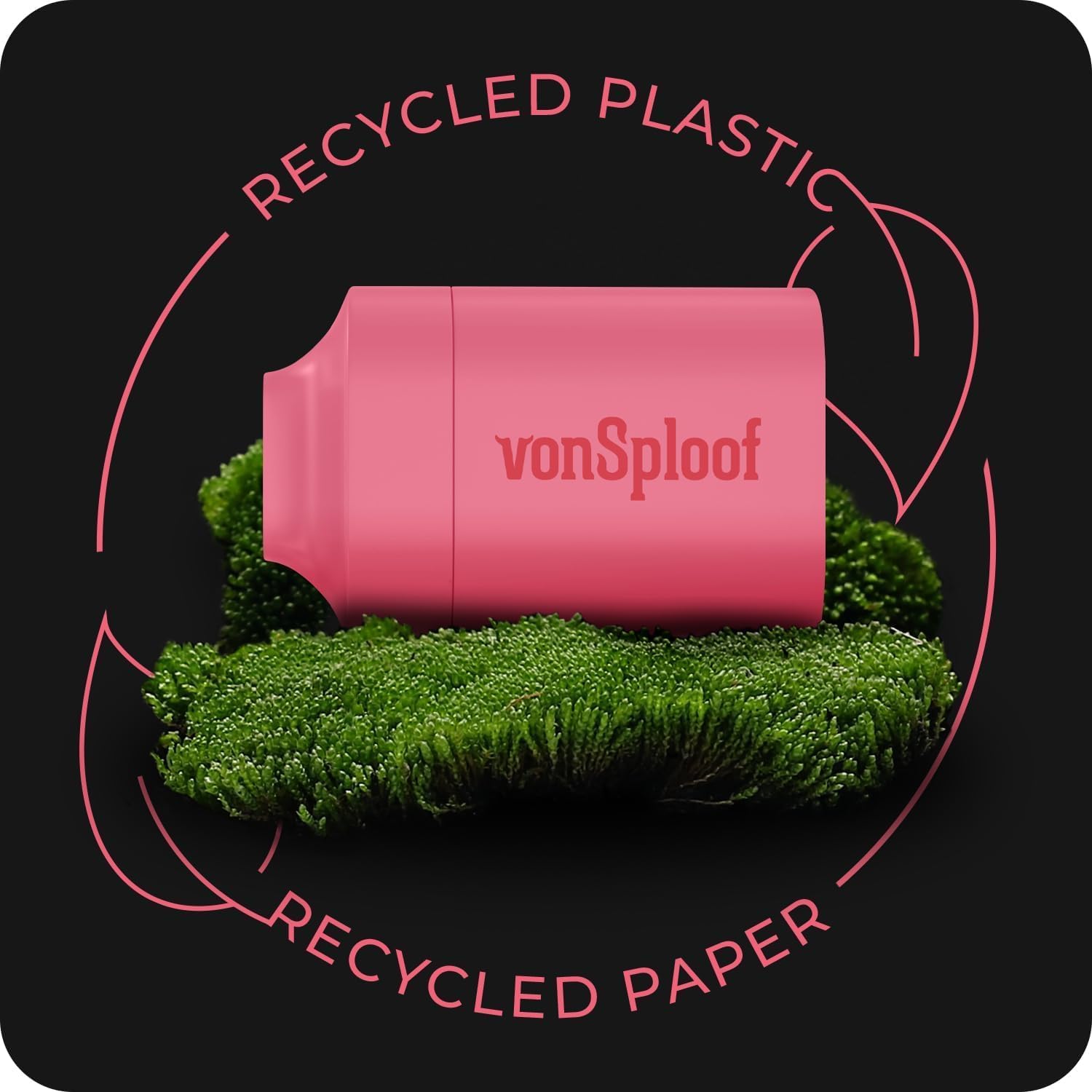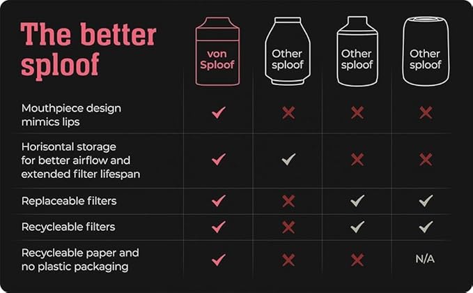 Със своята здрава конструкция от рециклирана пластмаса и издръжливи, сменяеми филтри без пластмаса, Sploof е основен аксесоар за пушене, който поддържа въздуха без миризми на дим, като същевременно подхожда на всеки стил и облекло.