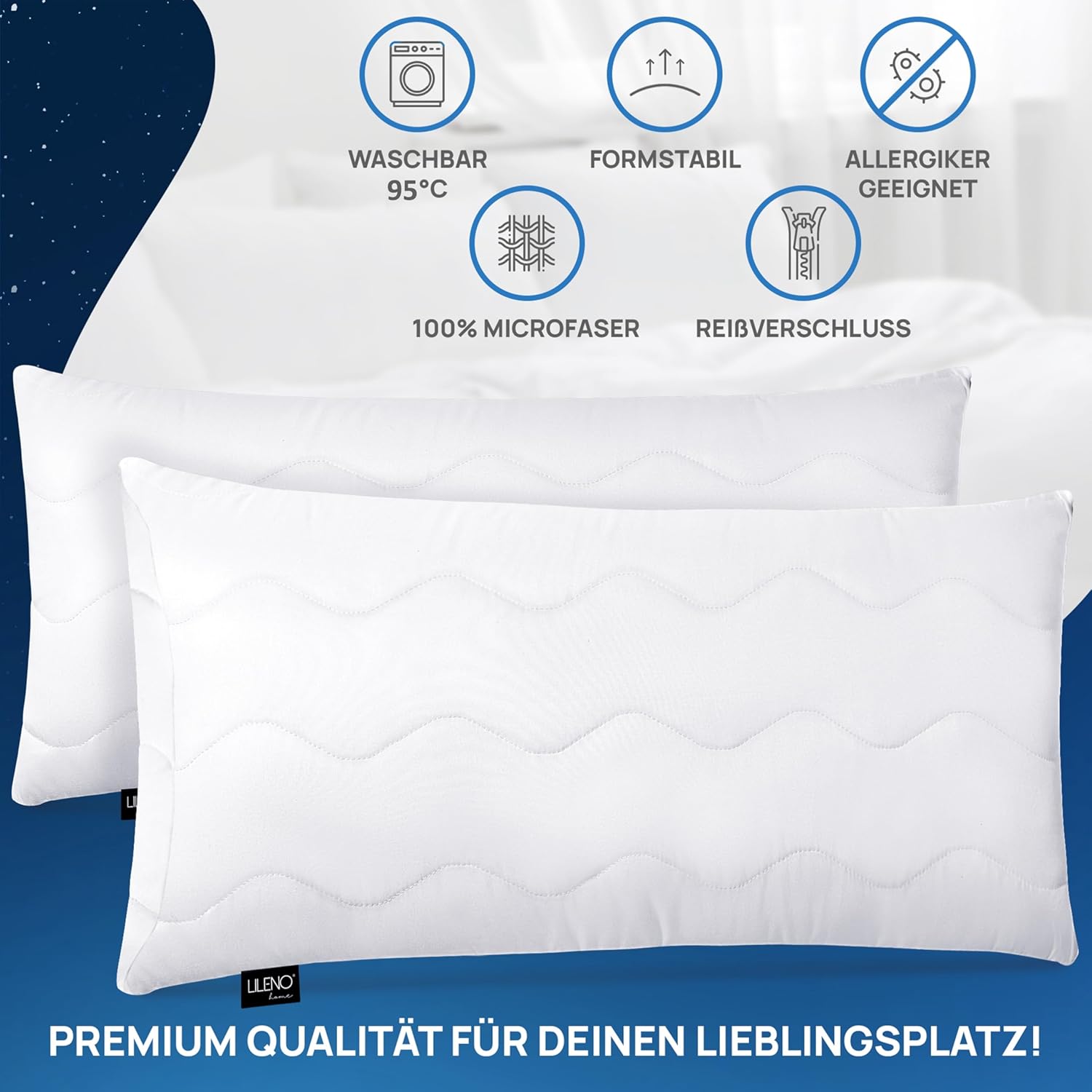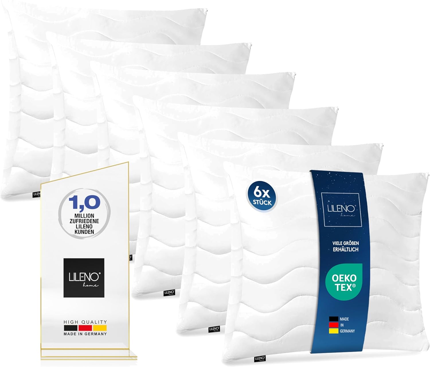 LILENO HOME Твърди възглавници с пълнеж от 650 г, декоративни възглавници за легло или диван с цип за регулиране, перат се до 95°C, 40 x 80 см, комплект от 6 броя
