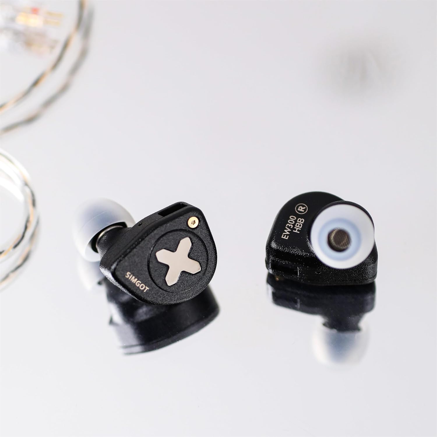 LINSOUL SIMGOT EW300 1DD+1Planar+1PZT хибридни слушалки за мониториране на уши, кабелни слушалки IEM, геймърски слушалки със сменяеми накрайници, посребрен OFC IEM кабел за аудиофилски музиканти (EW300 HBB)