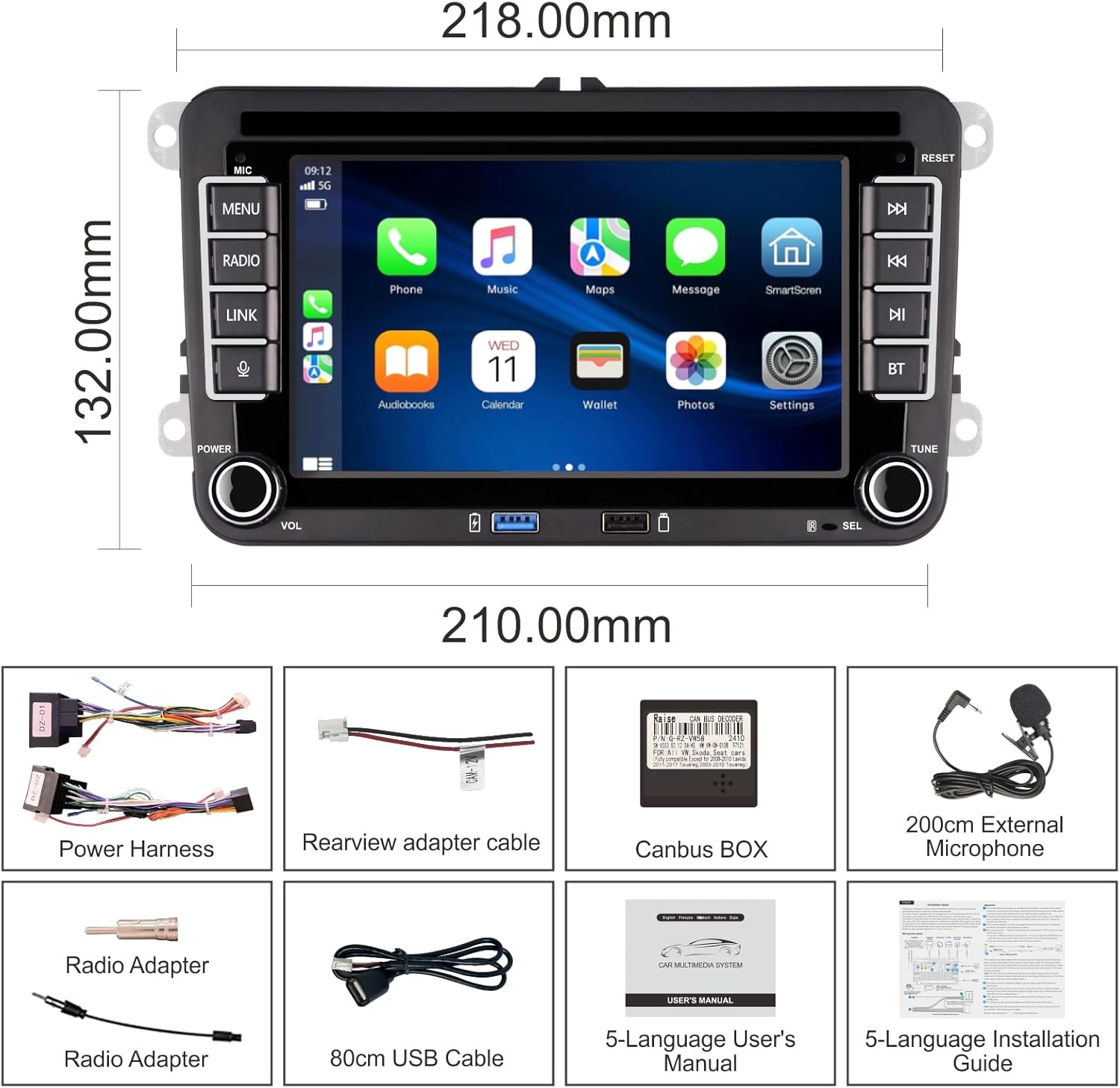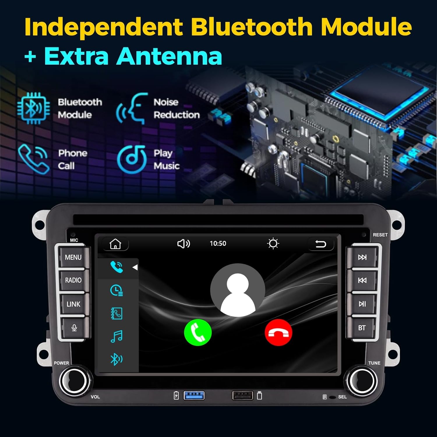 • Bluetooth 5.0 и FM/AM/RDS автомобилно радио VW: Това автомобилно радио поддържа разговори със свободни ръце, възпроизвеждане на музика и синхронизиране на календара с ангажименти с вградени и външни микрофони за по-ясни разговори. AM/FM/RDS радиото има висококачествен чип с мощно намаляване на шума и компенсация на смущенията. Могат да бъдат предварително настроени 18 FM и 12 AM предавателя.