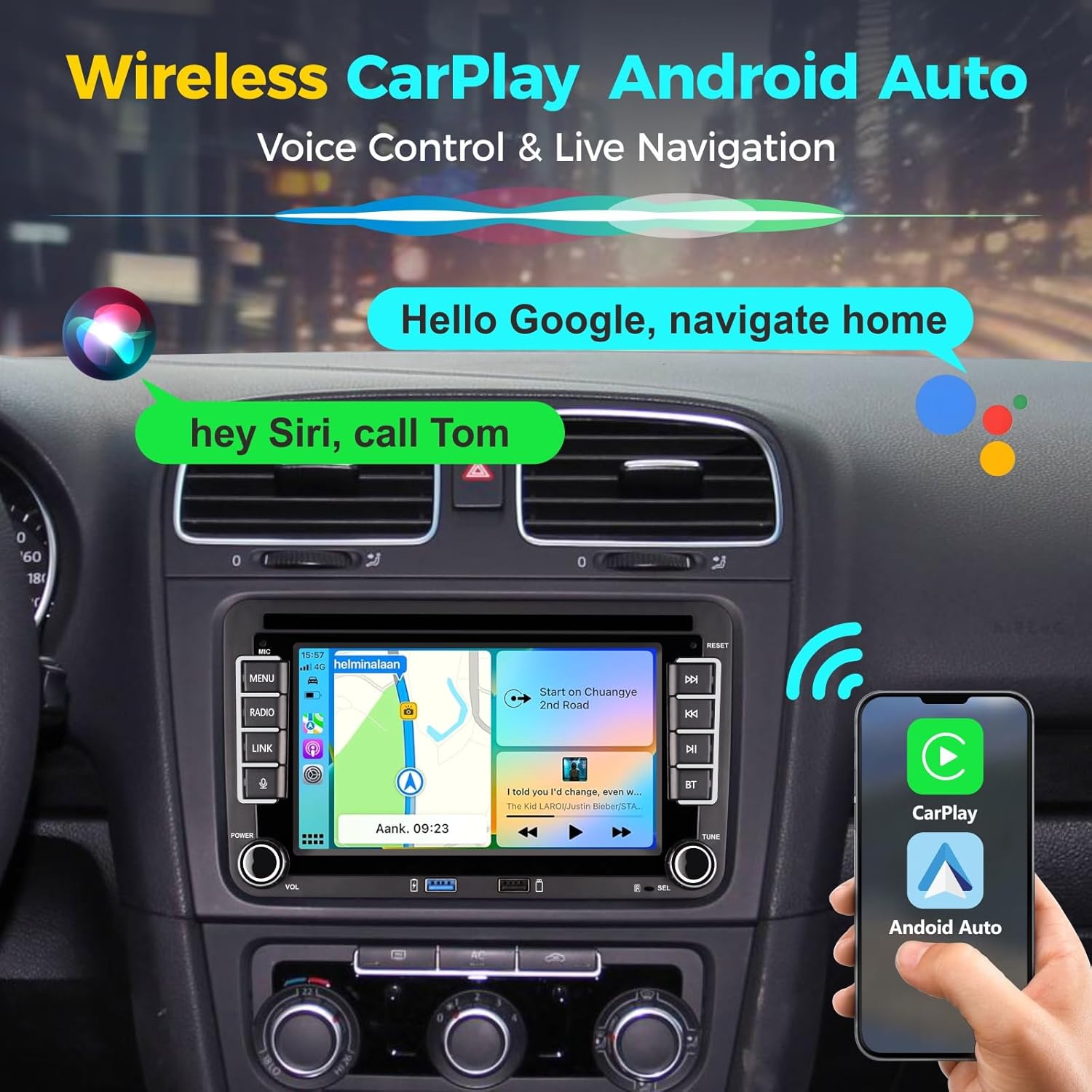 • Дву-DIN авторадио за VW: Този дву-DIN дисплей за авторадио е специално разработен за Volkswagen. Съвместимите модели включват: Golf 4, Golf 5, Golf 6, Golf 7, Caddy, Polo, Skoda, Seat, Skoda, SKODA, T5, T6 и др. VW радиото е оборудвано с най-новите WinCE системи и работи абсолютно гладко и без забавяне. Така че можете лесно да изтегляте приложения, да слушате музика и да навигирате, което подобрява вашето шофиране.