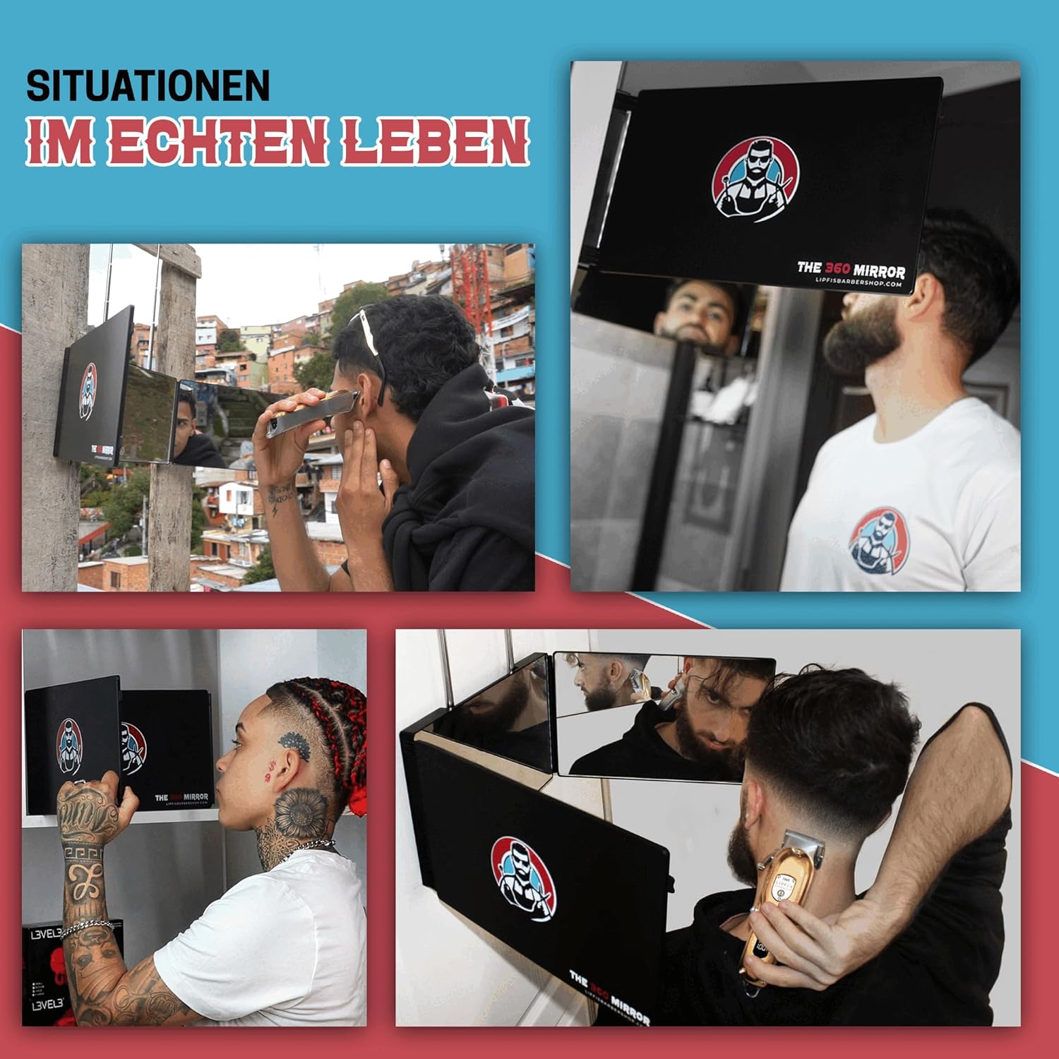 LIPFISBARBERSHOP.COM 360-градусово огледало - Регулируеми телескопични куки - Огледало за самостоятелно подстригване за мъже - Тройно огледало за подстригване - Огледало за самостоятелно подстригване - Огледало за самостоятелно подстригване