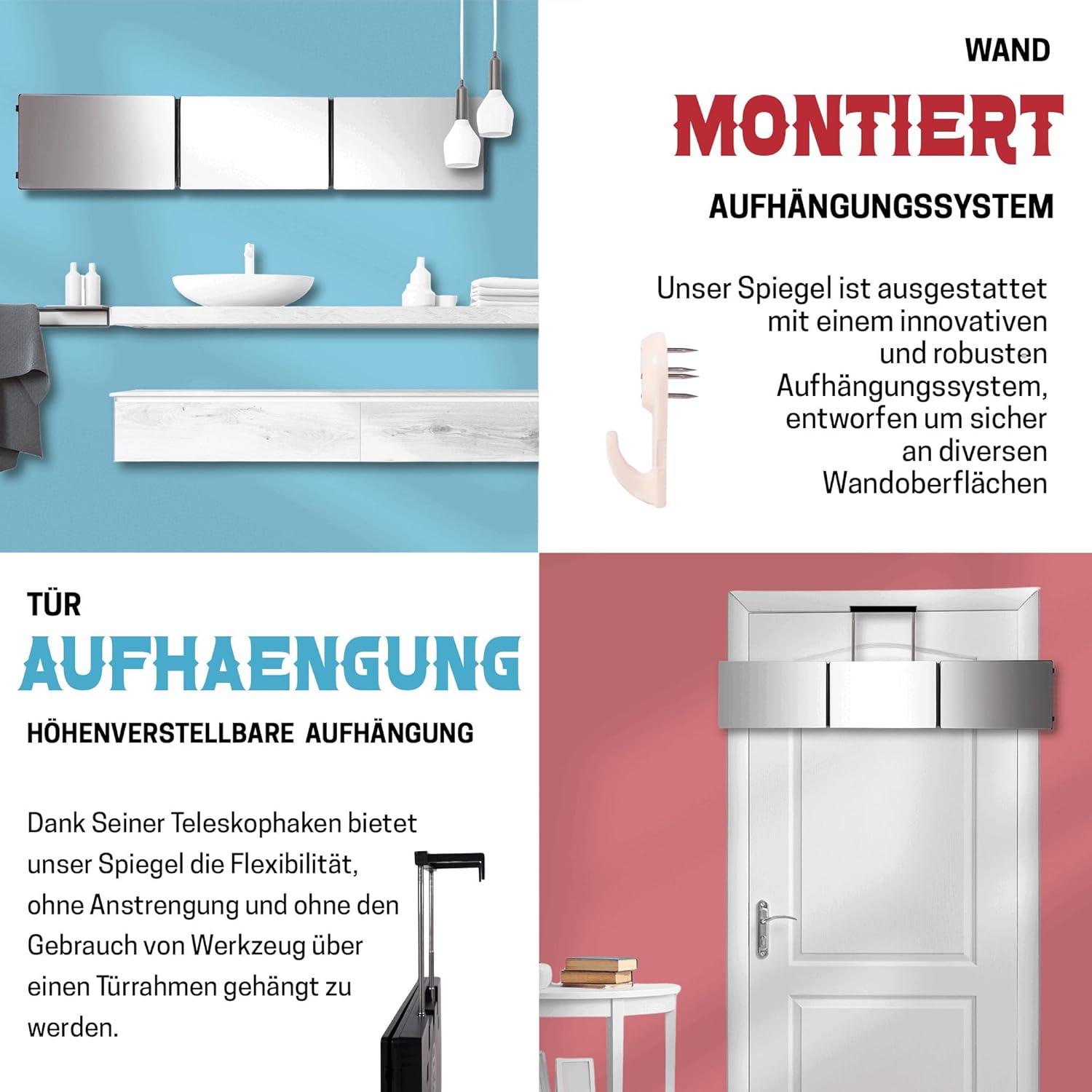 • 【360-ГРАДУСОВ ОБЗОР】: Нашият троен дизайн осигурява цялостен 360-градусов обзор, който ви позволява да разгледате всеки ъгъл на главата си и без усилие да се справяте със сложни подстригвания. Получете пълен контрол и професионално ниво на прецизност.