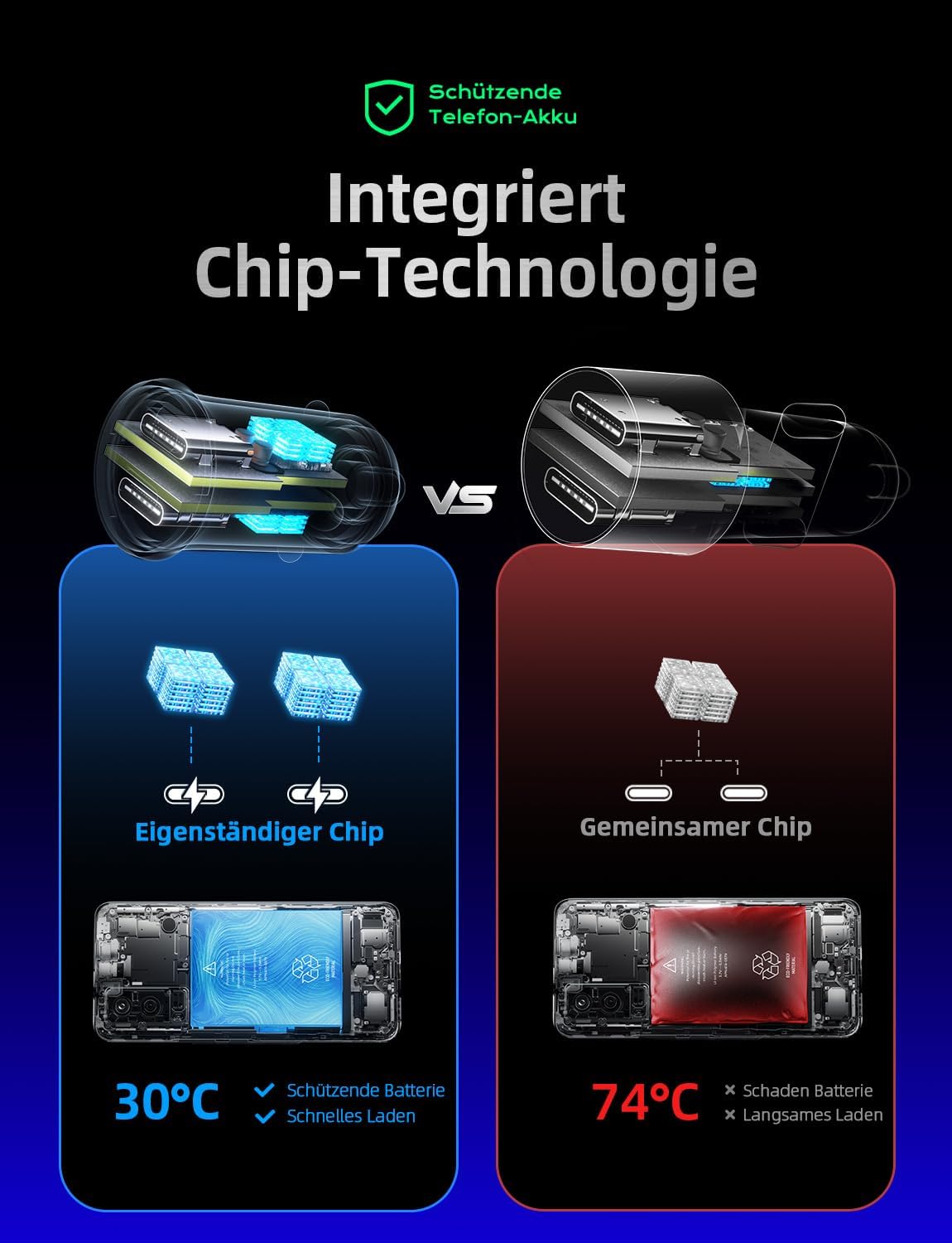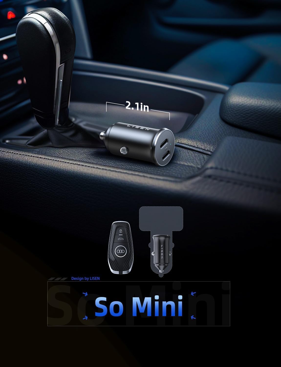 • Изцяло титаниев корпус, не се топи: корпусът на адаптера за запалка за кола, изработен от титаниева сплав с висока плътност, помага на зарядното устройство за iPhone да разсейва топлината по време на зареждане. Това подобрява ефективността на зареждане с около 15% в сравнение с пластмасовите зарядни устройства за кола, без топене и без опасност. Изцяло металният корпус на USB C адаптера за запалка за кола 12 V също има уникален дизайн и луксозна текстура.