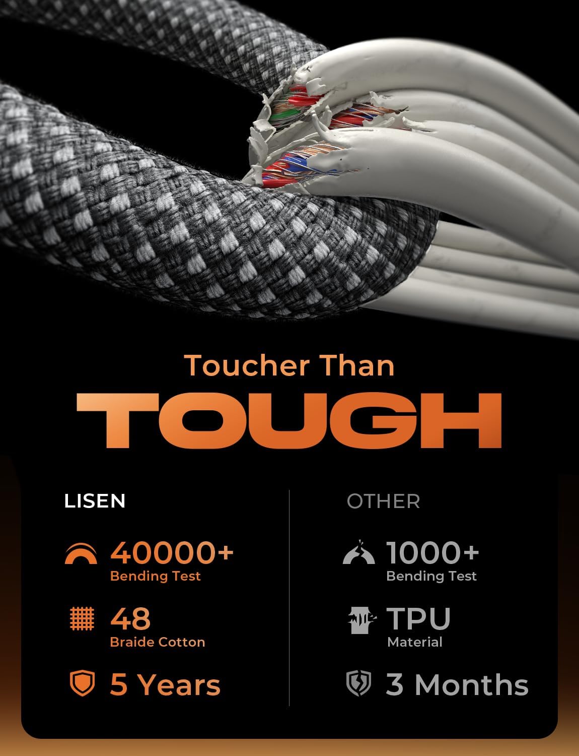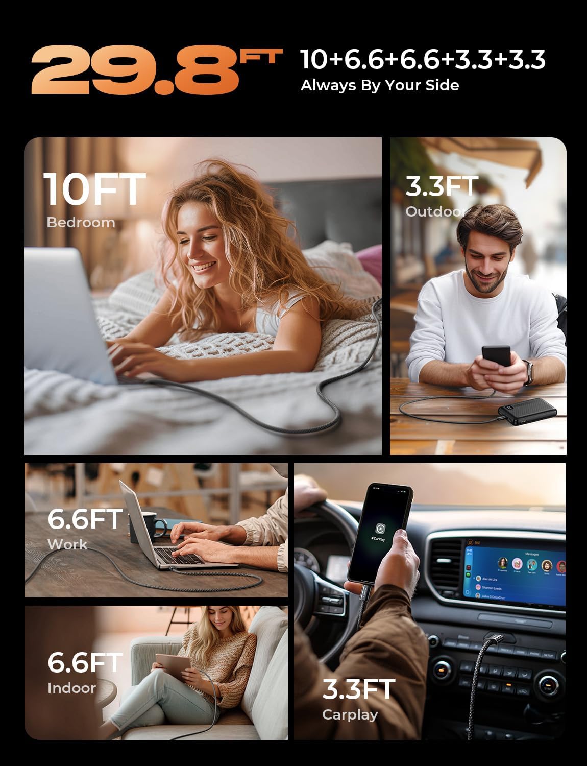 • 4 броя, 4 дължини: ще получите 4 броя (0,5 м + 1 м + 1 м + 2 м) кабели за зареждане на iPhone 17. Отговарят на множество изисквания, когато искате да зареждате устройство в офиса, у дома или колата. LISEN предлага 24-месечна безпроблемна гаранция и 24-часово приятелско обслужване на клиентите.