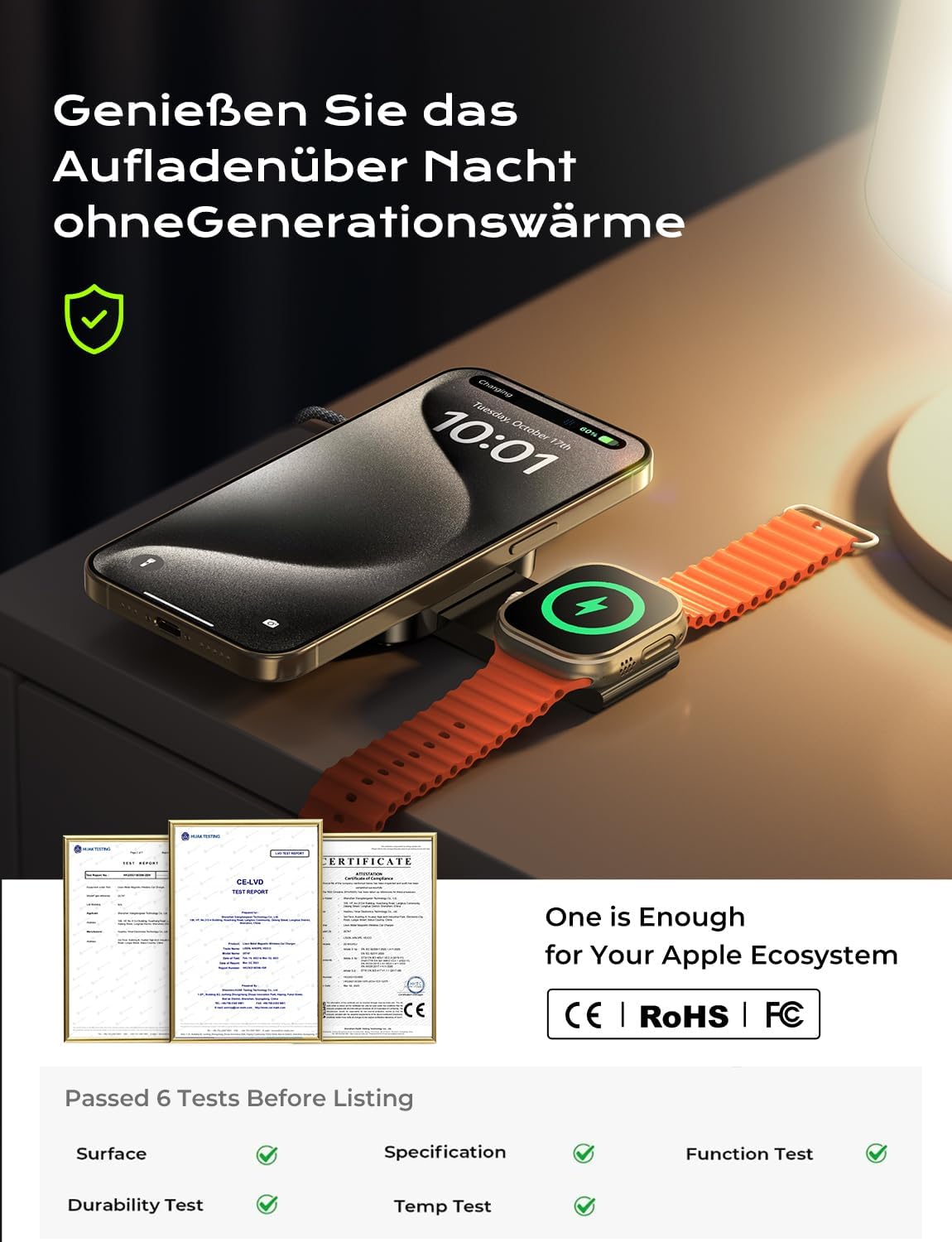 • [Международен патент за безопасност на зарядните устройства] Заредете iPhone 17 air pro max 16 15 pro Max 14/13/12 серия за нула време с високоскоростно зареждане до 15W с безпроблемно магнитно подравняване чрез зарядното устройство Apple iPhone MagSafe. След 100% зареждане през нощта, зареждането автоматично спира и осигурява най-здравословната защита за батериите на множество устройства. Преносимото зарядно устройство за iPhone има защита от прегряване, претоварване по ток, пренапрежение и късо съединение и ви предлага безопасна защита при зареждане.