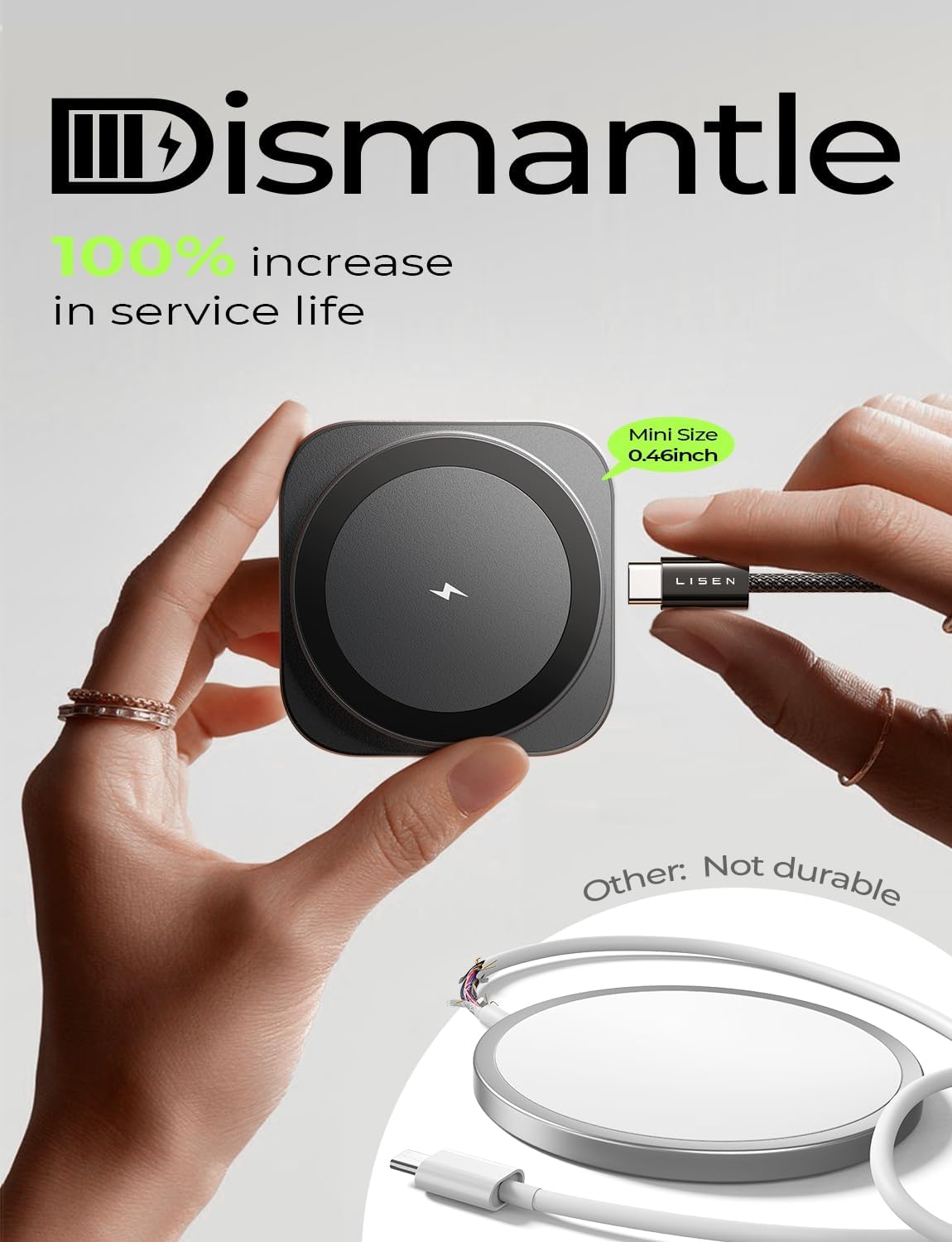 • Act responsibly and sustainably: As a responsible company, LISEN acts sustainably, according to high environmental and social standards. We are anchoring sustainability deeper and deeper in the way we do business - in our own operations and beyond, along with our suppliers. LISEN Wireless iPhone Charger Fast Charger Apple Magsafe charger also comes with 24-month warranty and friendly customer service. Our expert team is always at your side