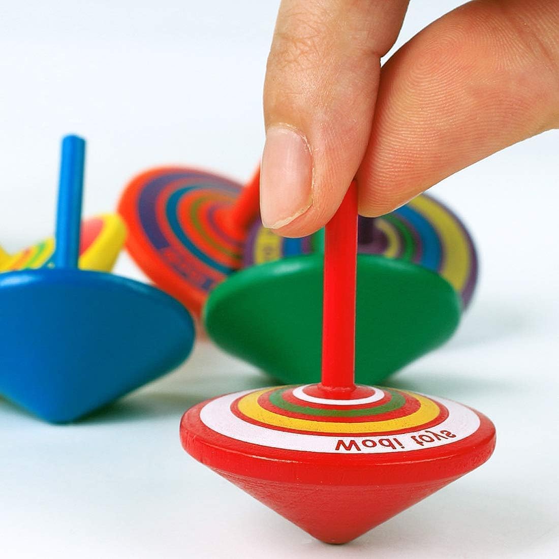 • Малки дървени въртящи се пумпли с различни цветни дизайни внасят много забавление в детската стая. Шарките, боядисани в весели цветове, създават прекрасни картини, когато пумплата е в движение, очаровайки малките детски очи.