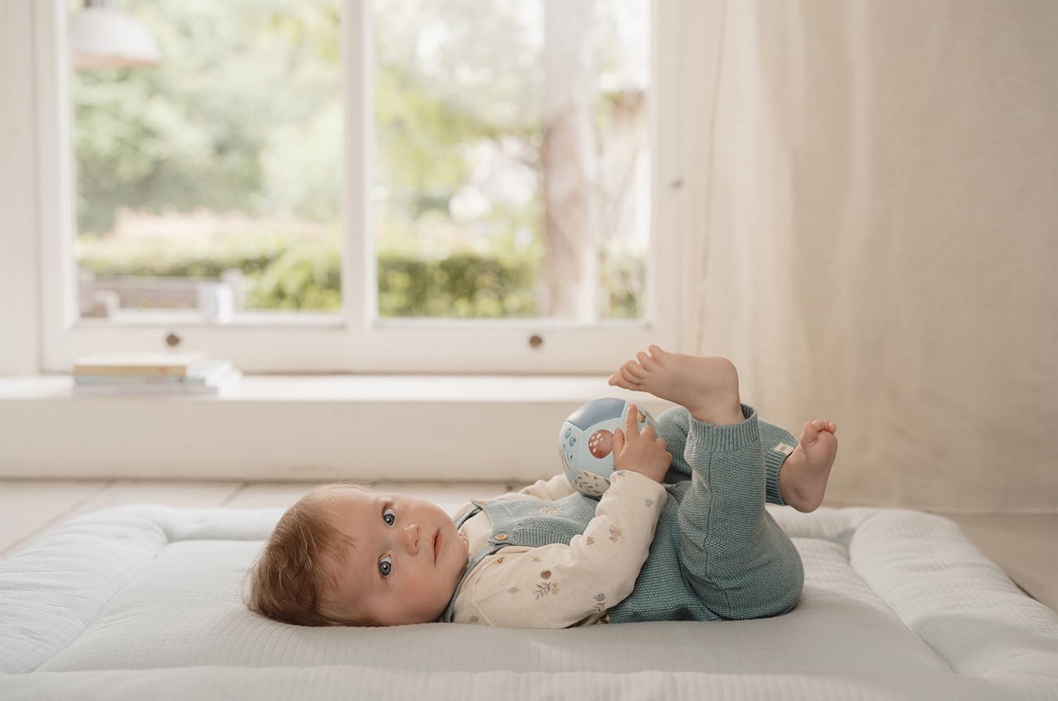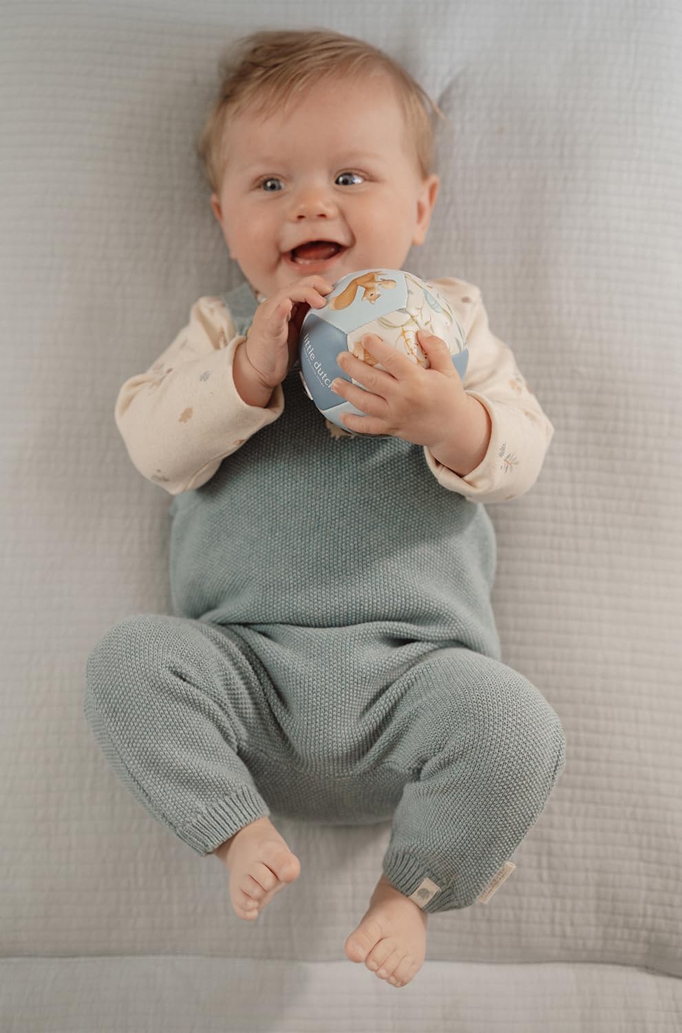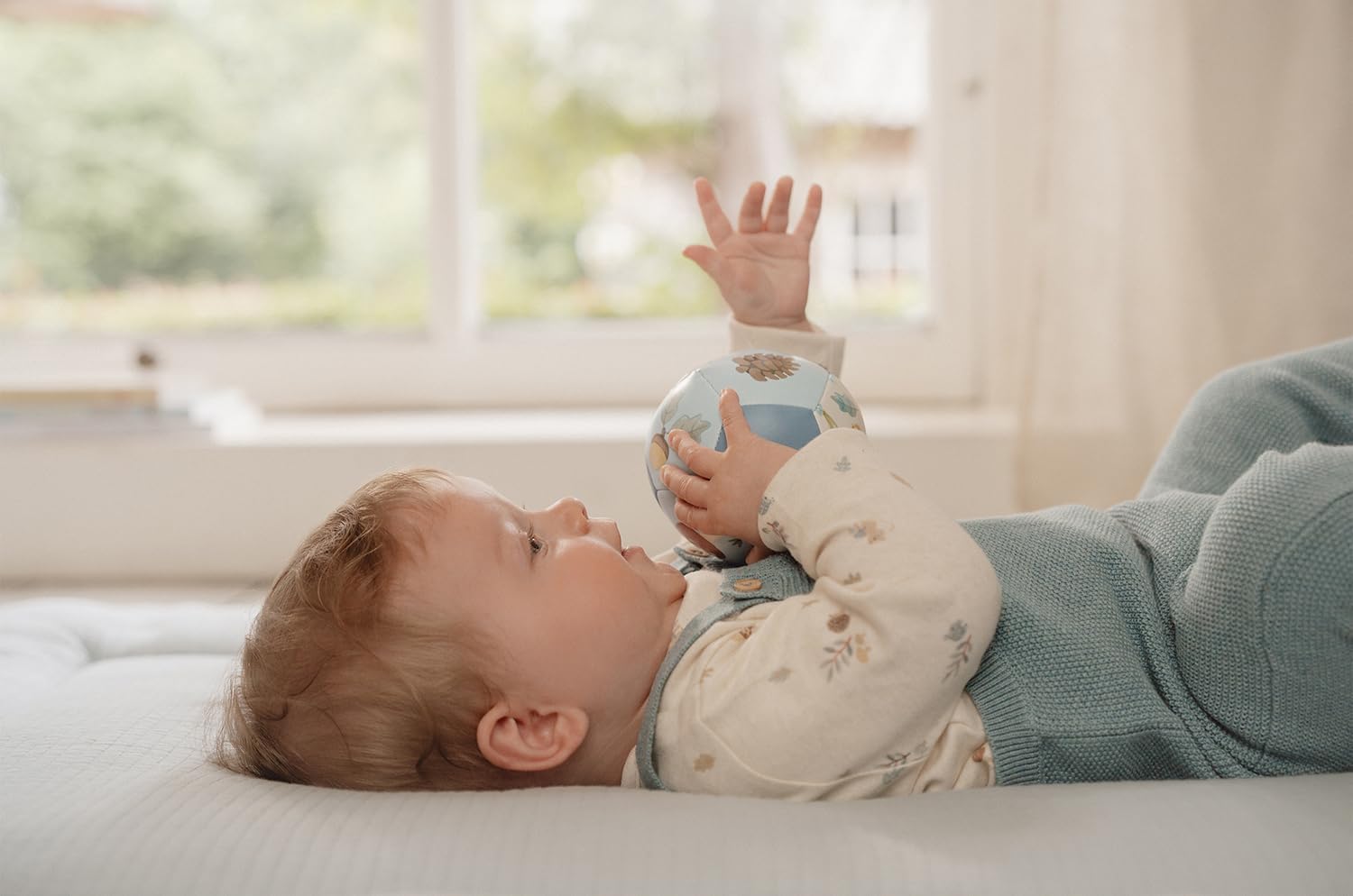 С диаметър от приблизително 10 см, той е идеален за хващане и търкаляне от малки ръчички.