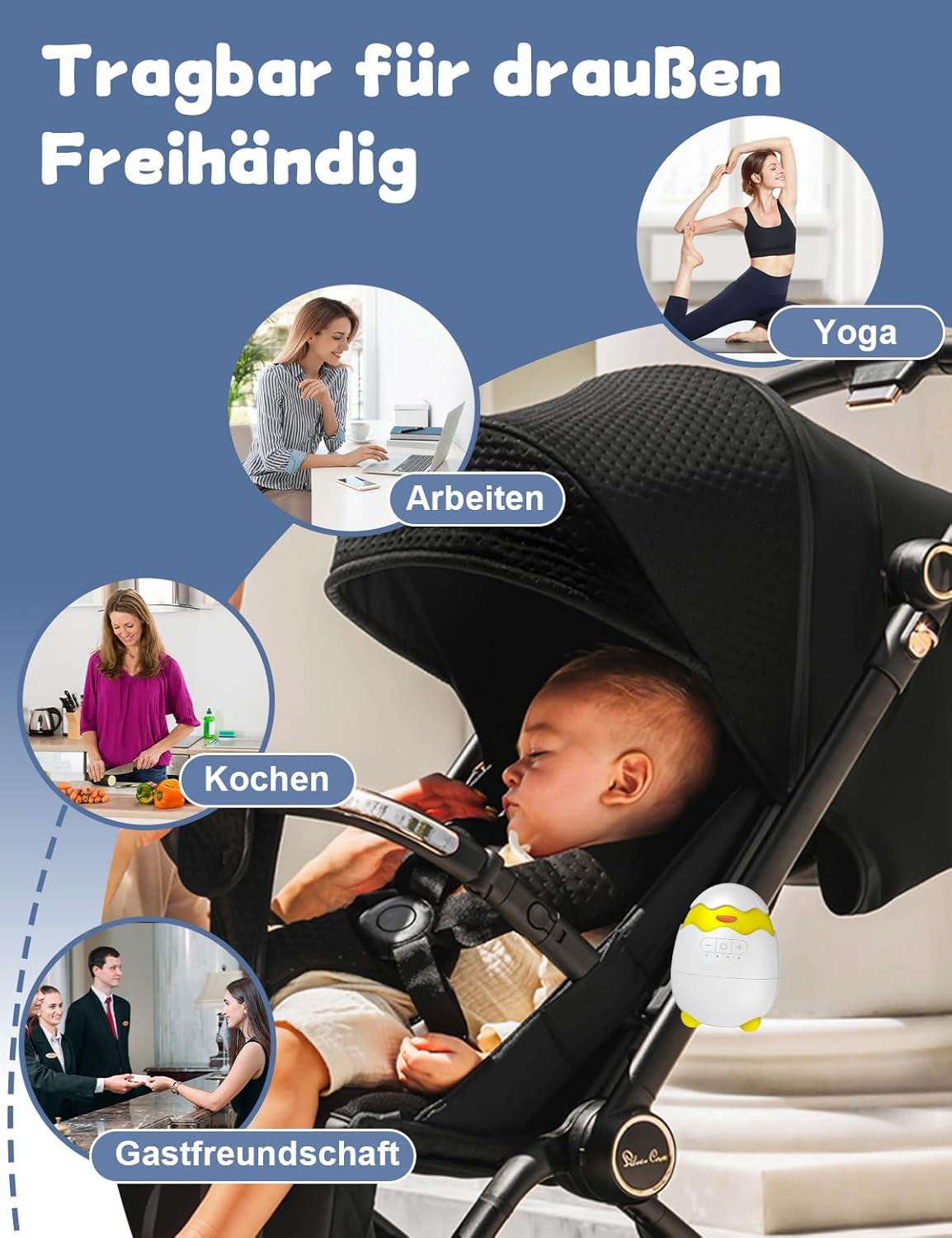 • Преносима за употреба на открито Освободете ръцете си - Тази люлка за количка е с въртящ се на 360° дизайн, който имитира естествените движения на люлеене. Тя е специално проектирана за употреба на открито и е устойчива на лек дъжд, за да осигури на вас и вашето бебе повече комфорт и безопасност по време на дейности на открито.
