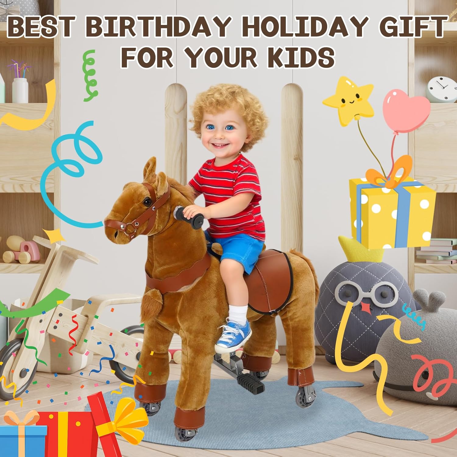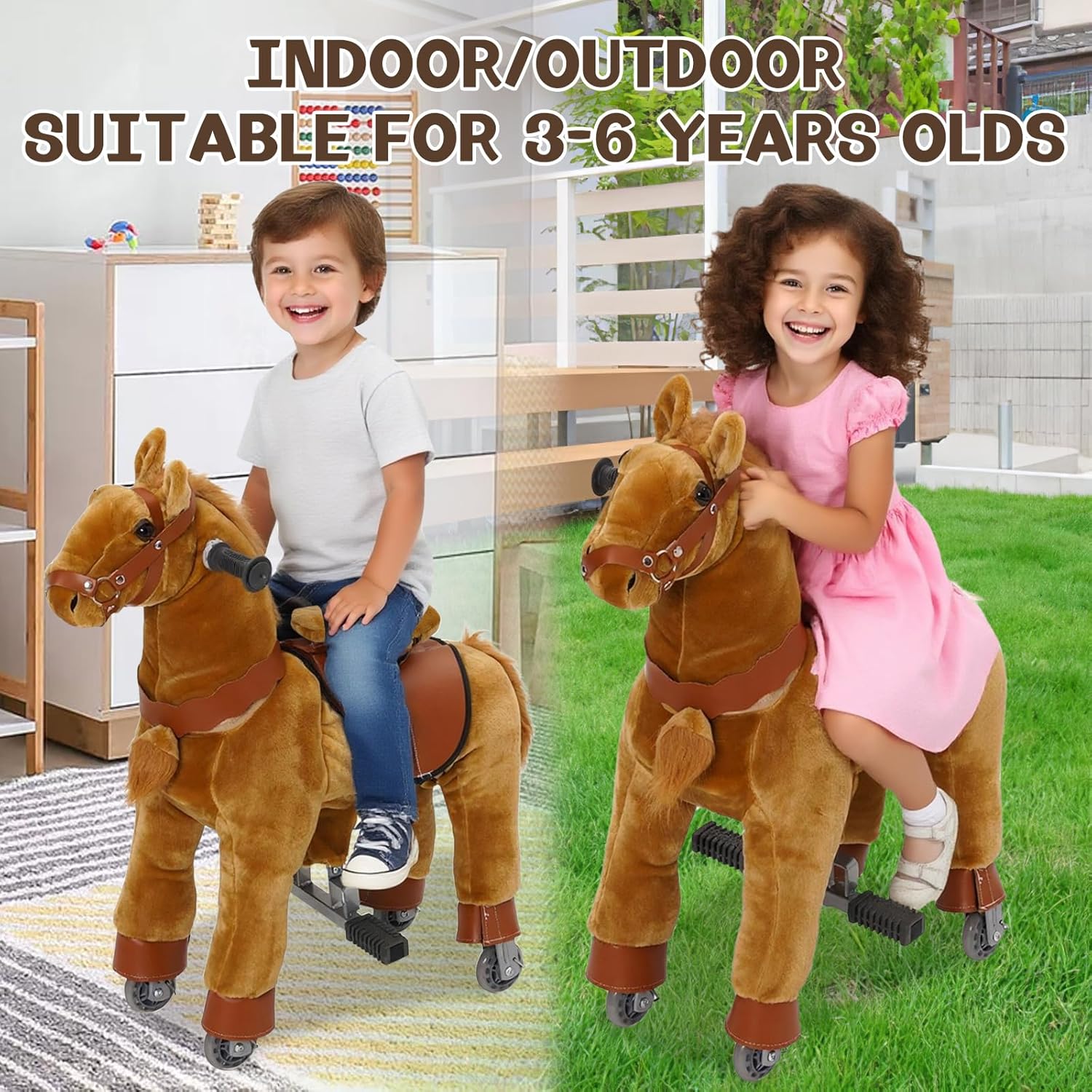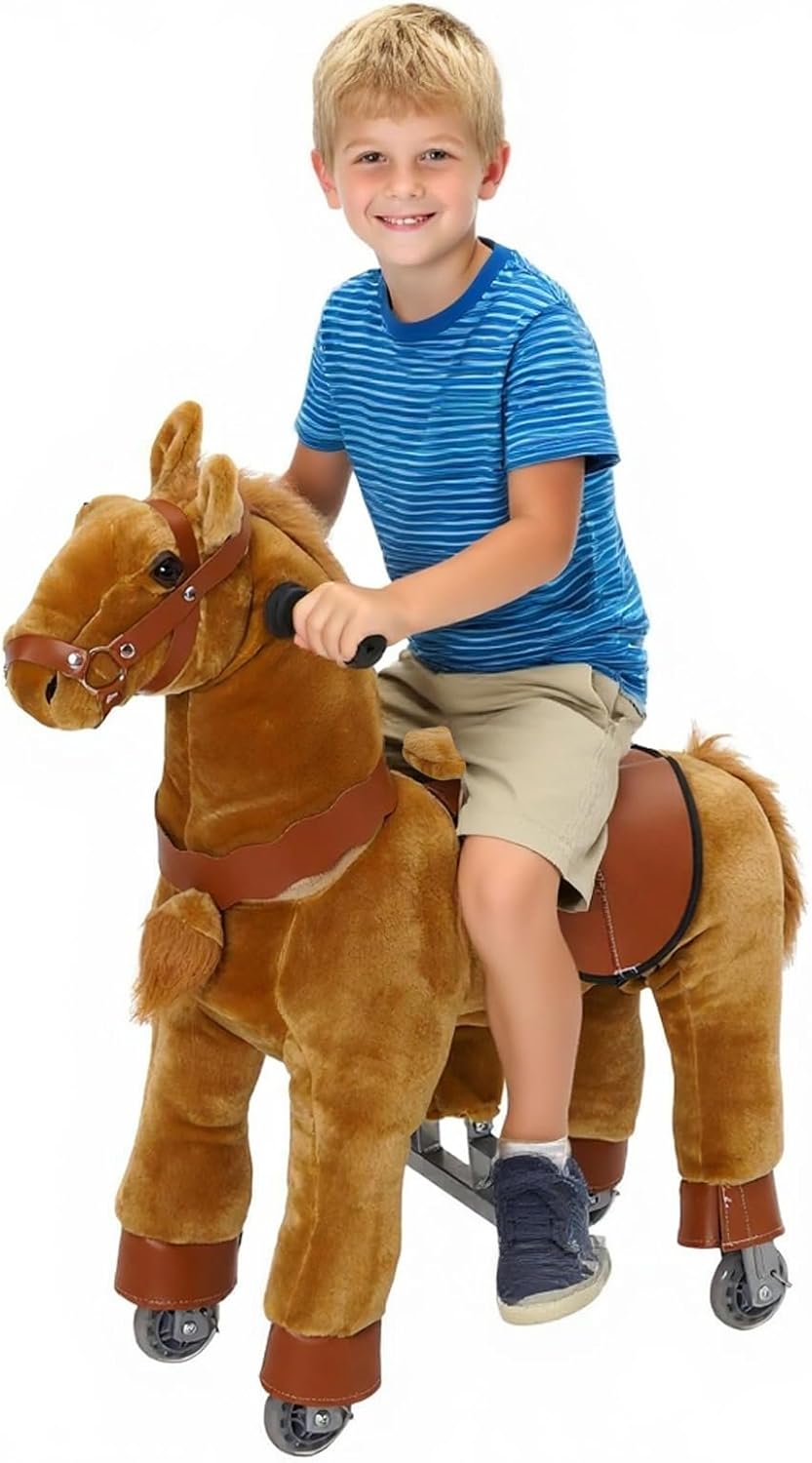 Люлеещ се кон на колела, играчка кон за яздене и сядане, кон за езда за деца със седло, юзда и стремена, кон за езда за деца на възраст 3-6 години