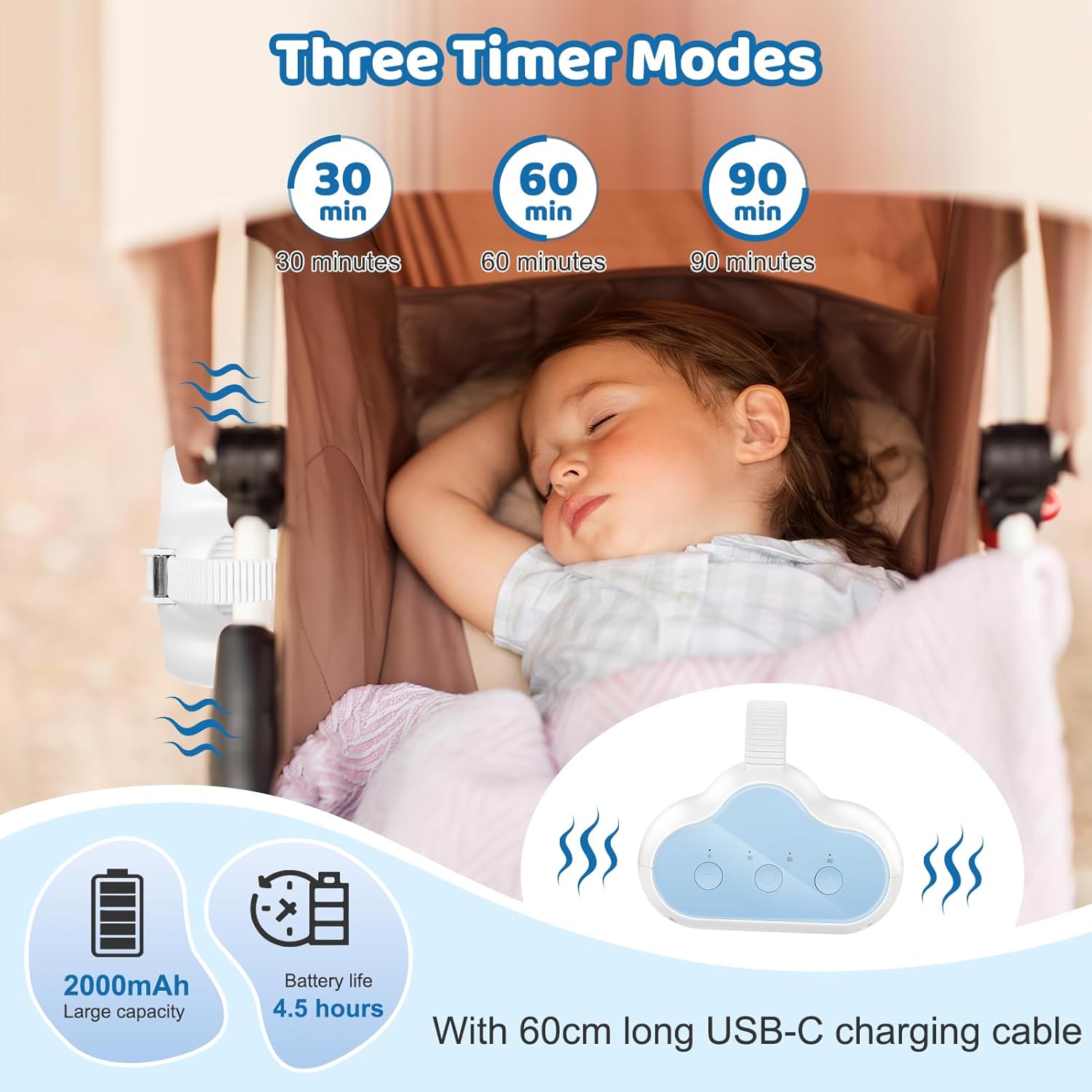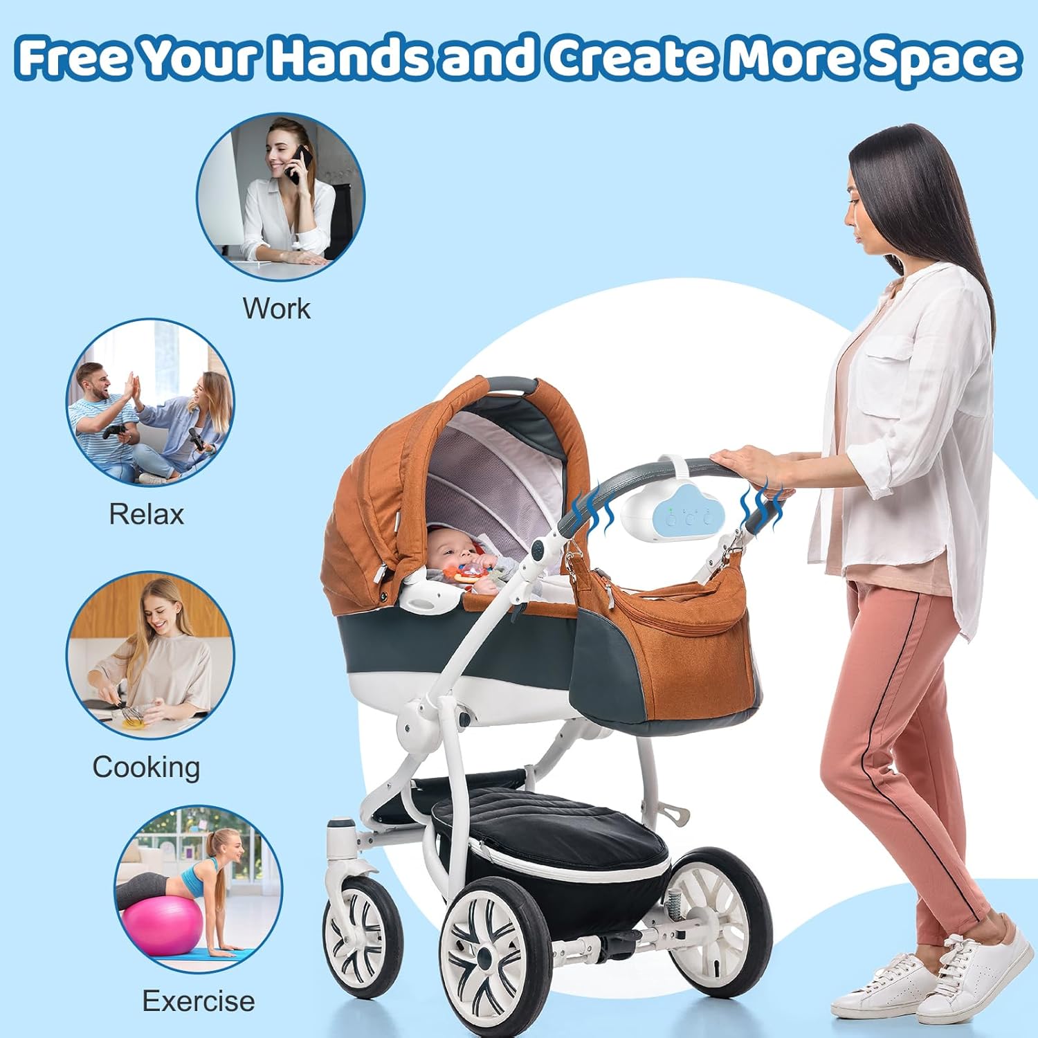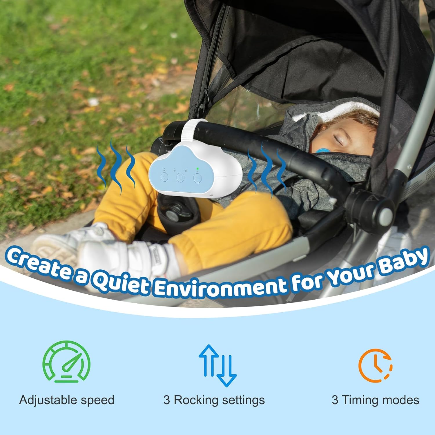 • 【Универсален комфорт на Sleepytroll】 Приставката Sleepytroll превръща всяка количка в люлееща се помощ – с 3 скорости (60-140 оборота в минута) и автоматичен таймер (30/60/90 мин).