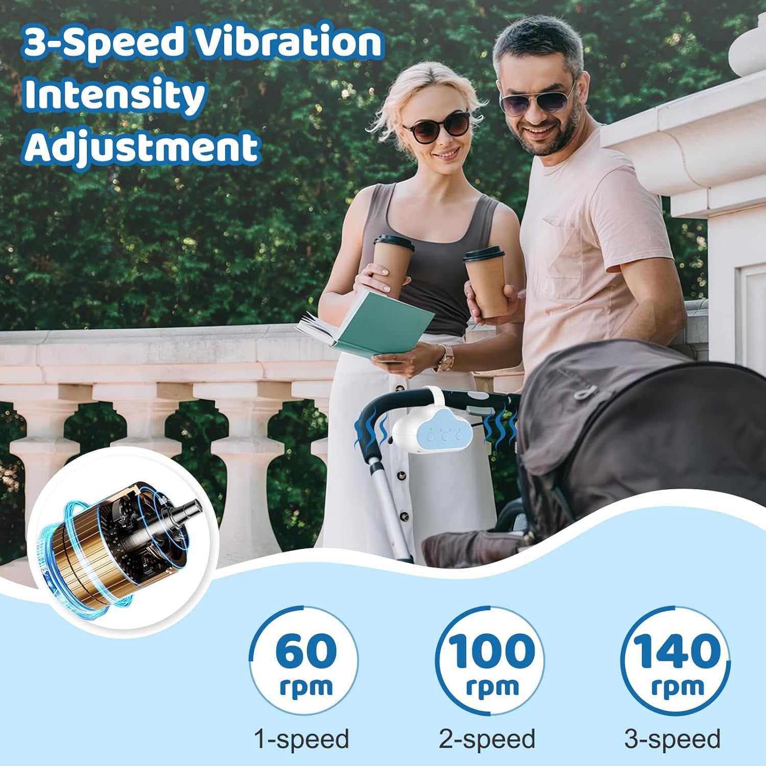 Люлка за количка, вибратор за количка с таймер за 30, 60, 90 минути, 3 регулируеми интензитета на люлеене, електрическа люлка за количка с USB-C презареждаща се конектор