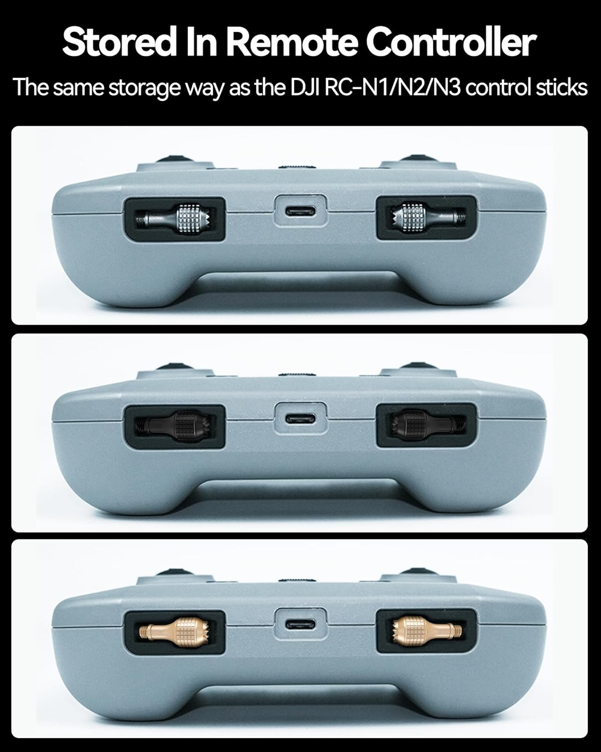 • 3-страничен джойстик от аерокосмически алуминий, анодизирано оцветяване, неплъзгащ се дизайн, осигурява отлично усещане и изживяване при полет. Може да се съхранява в долната част на дистанционното управление RC/RC 2 като оригиналния джойстик. 3 цвята, за да отговарят на вашите различни нужди.