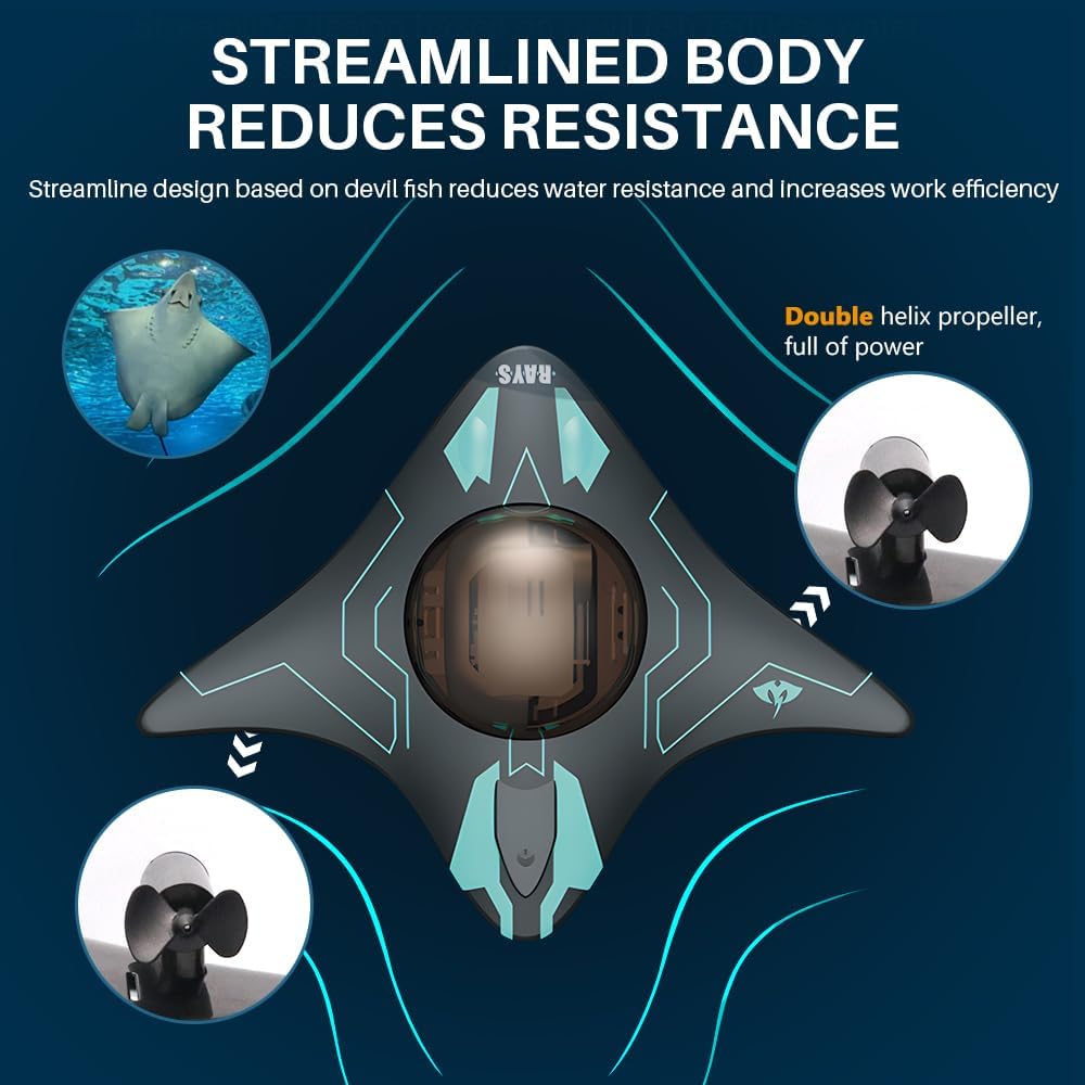 • ОПТИМИЗИРАН ДИЗАЙН Фото лодката има готин и вълнуващ външен вид, изработена от висококачествени материали и е базирана на рибата дявол. Гладката форма може да намали съпротивлението и да увеличи скоростта на движение; Конструкцията на витлото с двойна спирала осигурява повече мощност.