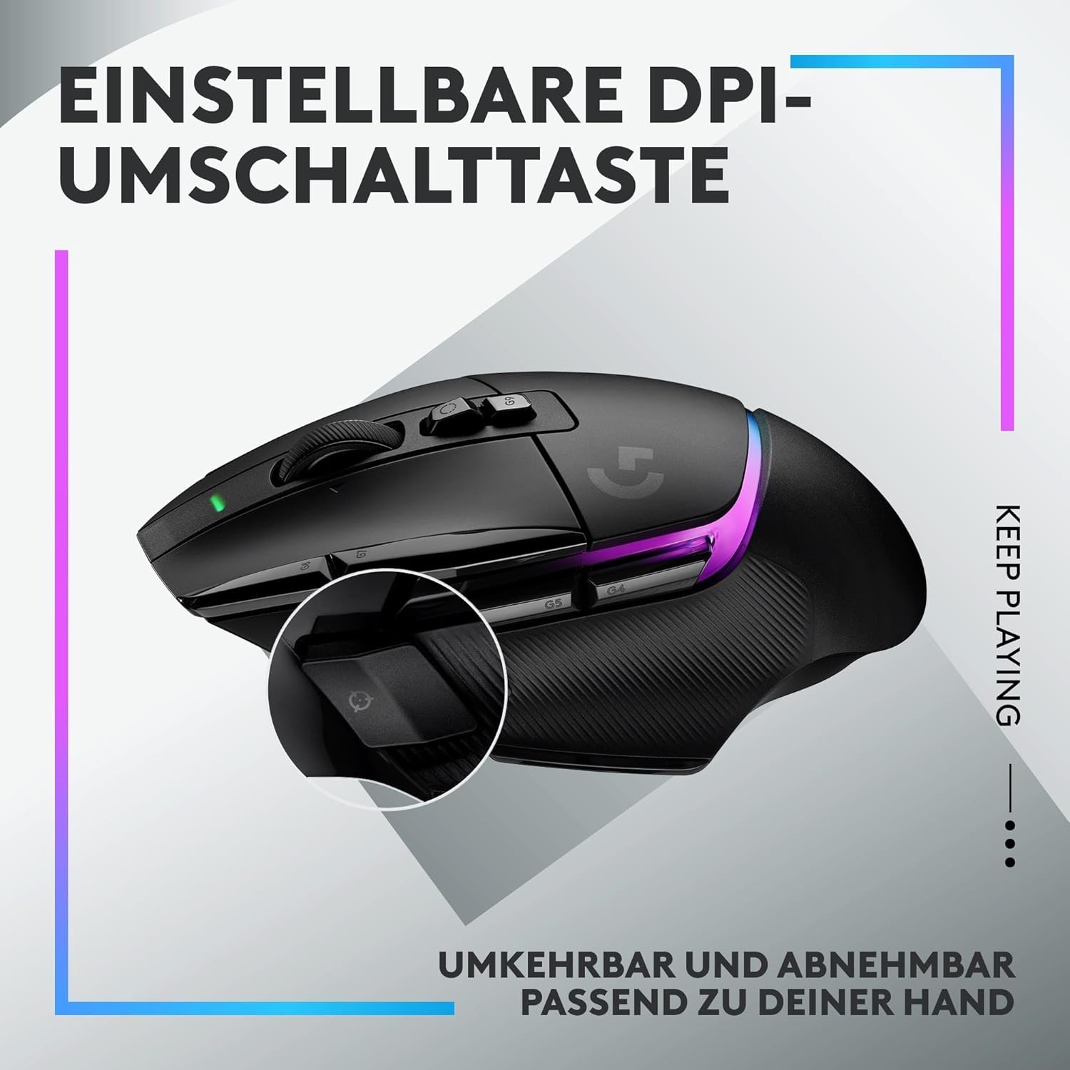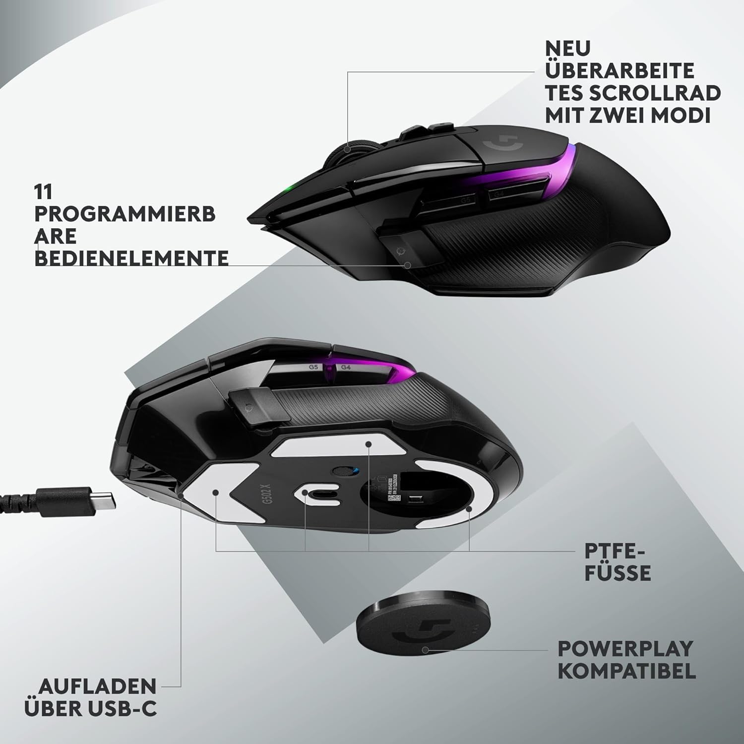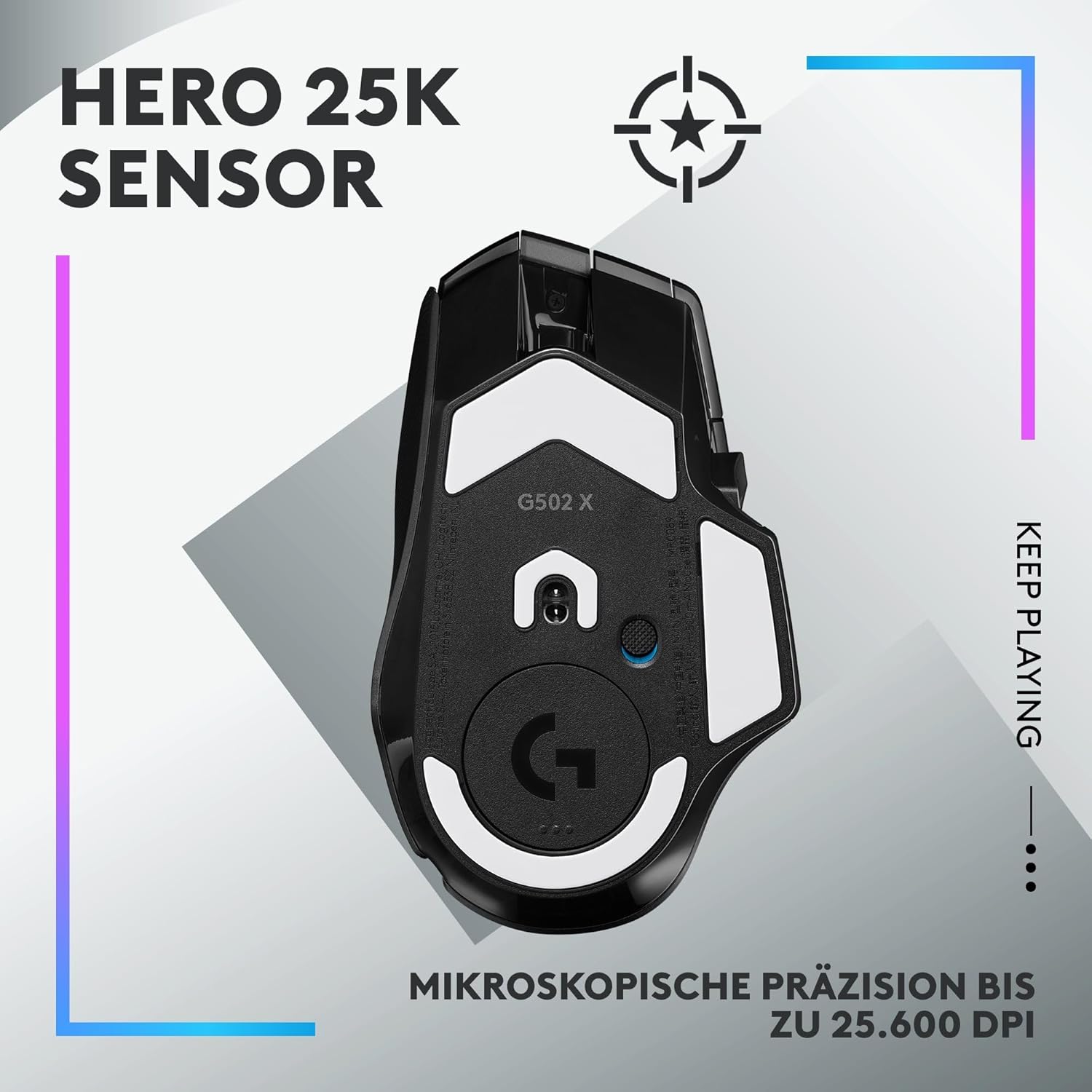 • СЪВМЕСТИМ С POWERPLAY С уникалното решение за безжично зареждане (продава се отделно), компютърната мишка G502 X PLUS остава заредена както в режим на заспиване, така и по време на игра.