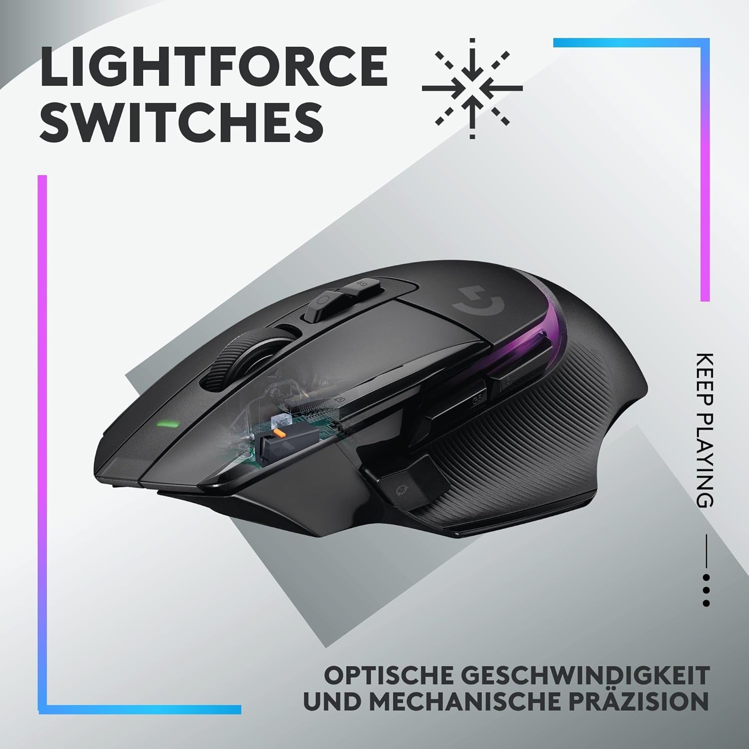 • Превключвател LIGHTFORCE: новата оптико-механична хибридна технология на превключвателите осигурява скорост, надеждност и прецизно задействане с бърза реакция за часове игра.